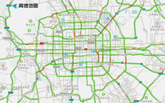 早高峰期间,二、三、四环,东、西、北五环,东、北六环,菜户营南路、通惠河北路、西直门北大街、德胜门外大街、圆明园西路至万泉河路、阜石路、莲石东路等道路进城方向将出现车行缓慢的情况;京藏高速、京承高速、京通快速、京港澳高速、机场高速等将出现进京潮汐车流,高峰时段为7:30至9:00。尾号限行轮换后,周一和尾号4、9限行的周二早高峰通行压力较大。