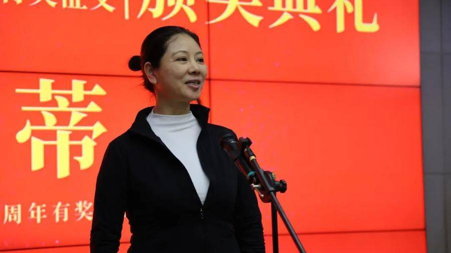 ▲古贝春集团有限公司党委书记、董事长徐秀菊在两大文学奖项颁奖典礼上致辞