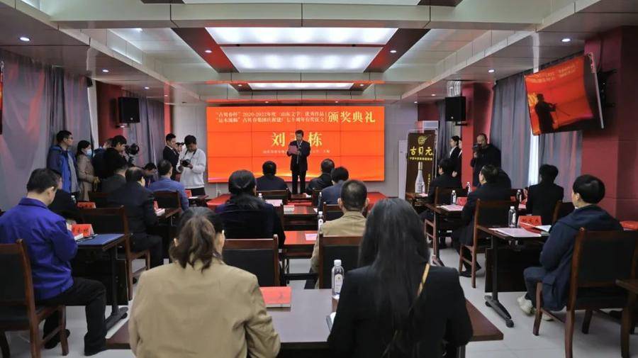 另讯 4月2日上午,在古贝春科研报告厅举行了“古贝春杯”2020-2022年度《山东文学》优秀作品奖、“运水流觞”古贝春集团庆祝建厂七十周年有奖征文颁奖典礼。