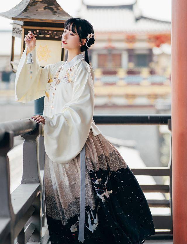 如果有些女生天生比较酷,建议可以选择换一身其他类型的汉服去故宫。还有一种类型的汉服叫做曲裾,这类汉服同样是由上衣和裙子两部分构成,与袄裙相比,曲裾的上衣要长一些,一般到膝盖以下。此外,袄裙的束腰是在上衣里面,而曲裾的束腰是在上衣外面,强调在外缠绕,突出纤细的腰肢。上衣的袖子往往比较宽大,看起来更加具有古风韵味。