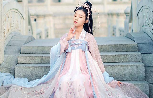 实际上,这类汉服设计得十分巧妙。它由襦系带和裙子两部分组成,大家可以先把襦系带穿上,之后再穿裙子,将裙子上面的带系在腰上,这样就可以很好地固定住汉服了。只要大家get到了正确的穿着方式,那汉服通常是不会轻易掉下来的,大家可以放心。这种类型的汉服不仅凸显了姣好的身材,而且还会增加一种仙气。