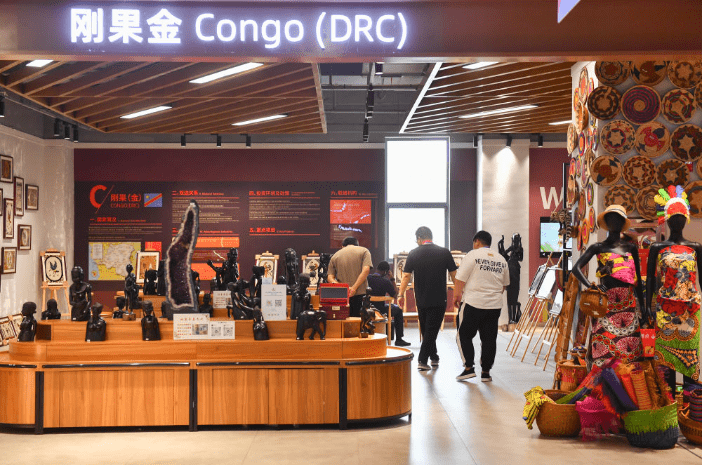 6月29日,在中非经贸合作促进创新示范园(湖南高桥大市场),参观者在刚果(金)国家馆参观。新华社记者 陈泽国 摄