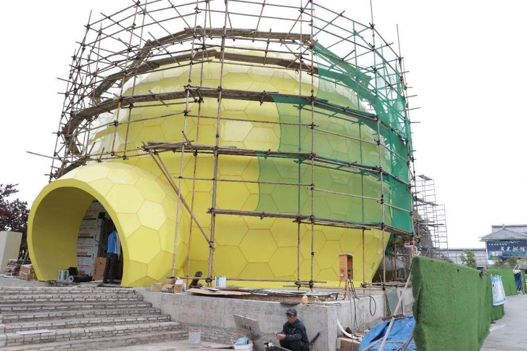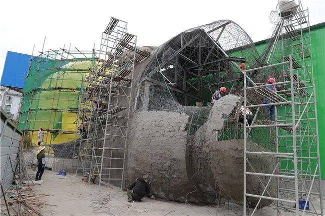 “飞越黄果树——360极限飞球球幕影院项目”打造的卡通形象“布依菓菓”项目建设现场