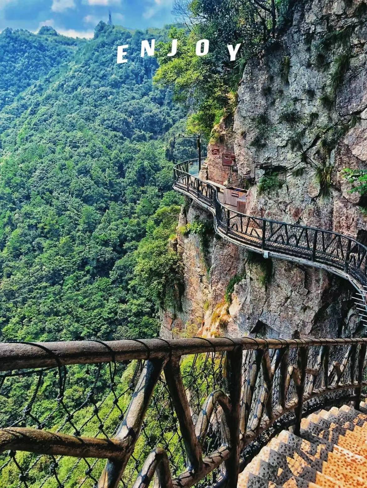 【玻璃栈道】徐凫岩玻璃栈道总长260米,是浙江省内最长的高空玻璃栈道,走在透明栈道上,首先映入眼帘的就是“浙东第一瀑”徐凫岩瀑布,身处高空近距离观非常震撼,甚至能感受到瀑布飞溅的水滴,脚下踩着透明玻璃,一眼就能望到山崖底,整个人都放松了不少~