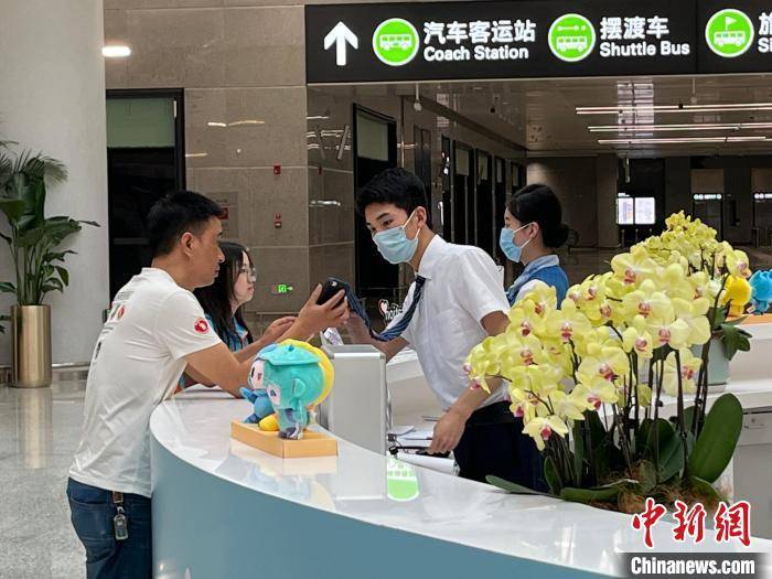 杭州萧山国际机场工作人员帮助乘客解答问题。 杭州萧山国际机场 供图