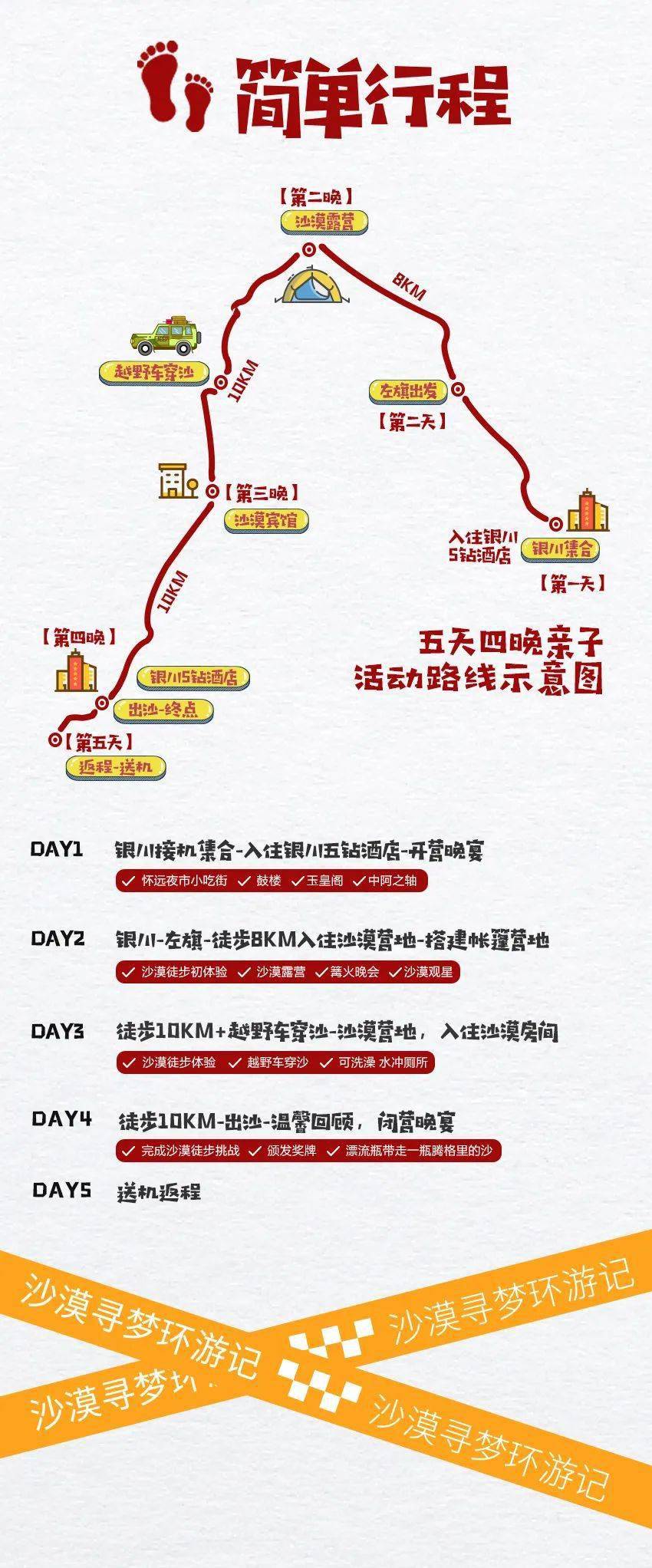 行程:徒步10km-出沙-温馨回顾,闭营晚宴