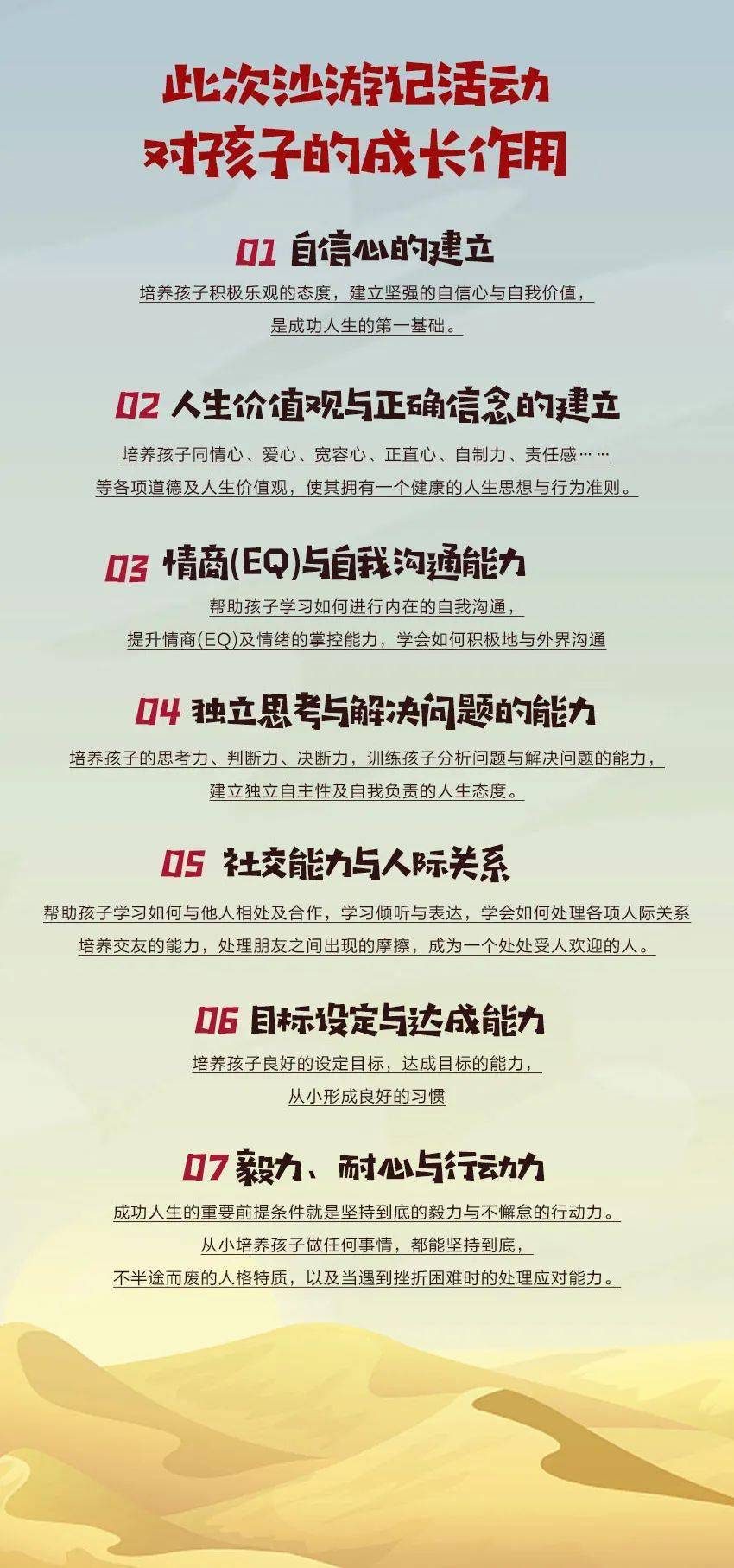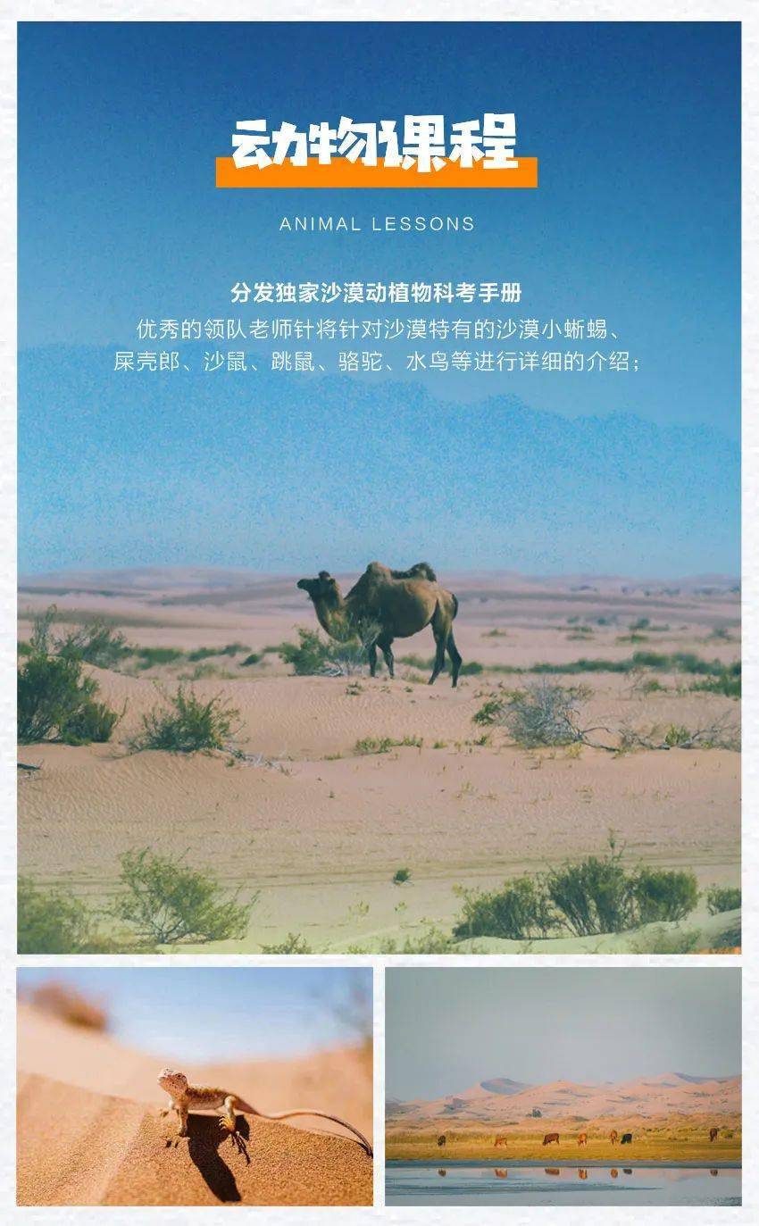6.活动项目:动植物科考、滑沙、望远镜观星、搭建沙漠麦草方格等