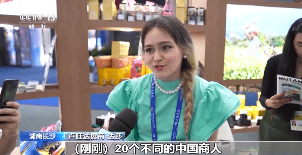一位中文名叫达莎的卢旺达展商,是第一次来到博览会,带来了非洲的茶和咖啡。展位上前来咨询的客商和观众不断。