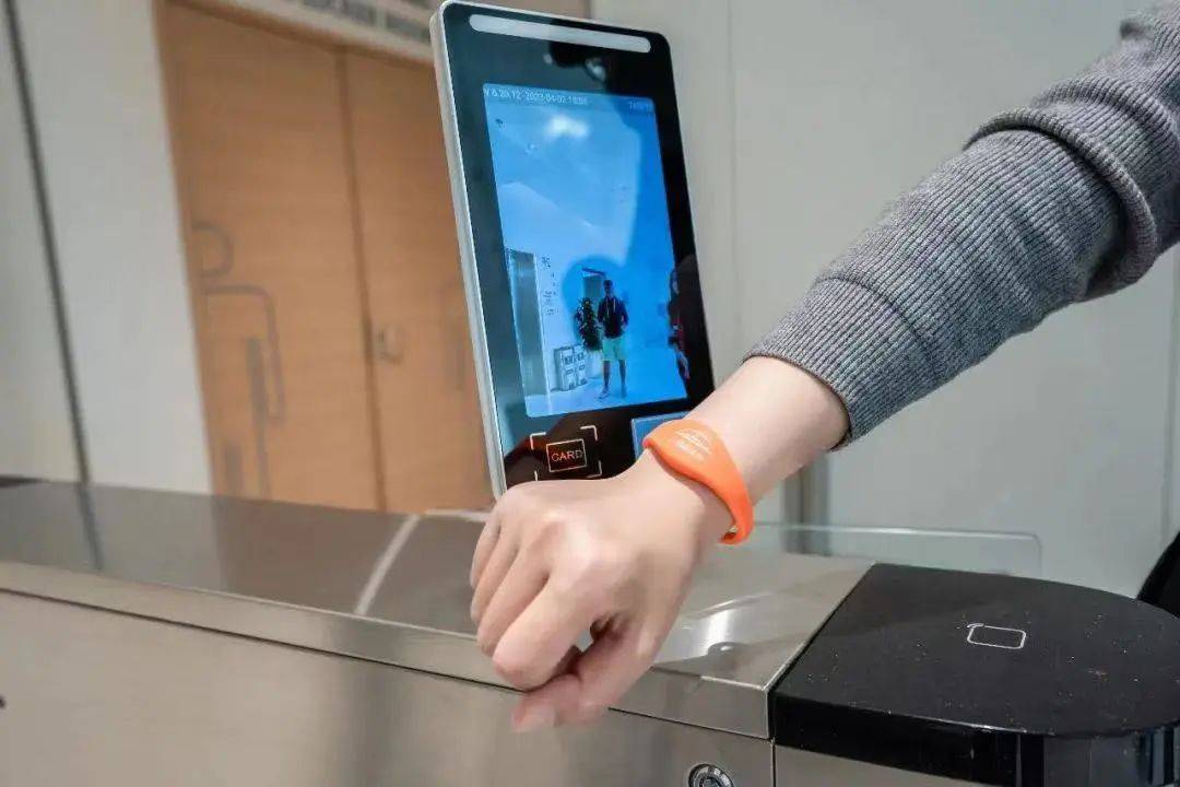 签署健康承诺书、完成人脸识别、出示购票码、领取手环、前往更衣室,从大堂到泳池只需5个步骤。即便是对智能手机操作不算熟练的泳客,也可在工作人员的引导下进入泳池。