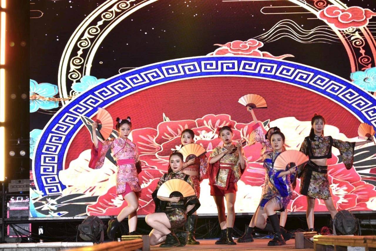 梦幻唯美的灯光秀、大气磅礴的开场舞《万疆》,曼妙翩跹的古典舞《仙宫舞曲》,武侠原声歌舞《沧海一声笑》等精彩纷呈。刚柔并济的国风街舞《对弈》《刀马旦》,古琴演奏舞剑《悟·君山》,乐队演唱《日不落》《你要跳舞吗》等轮番登场,令现场游客目不暇接,喝彩不已。