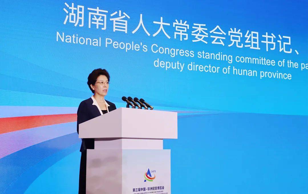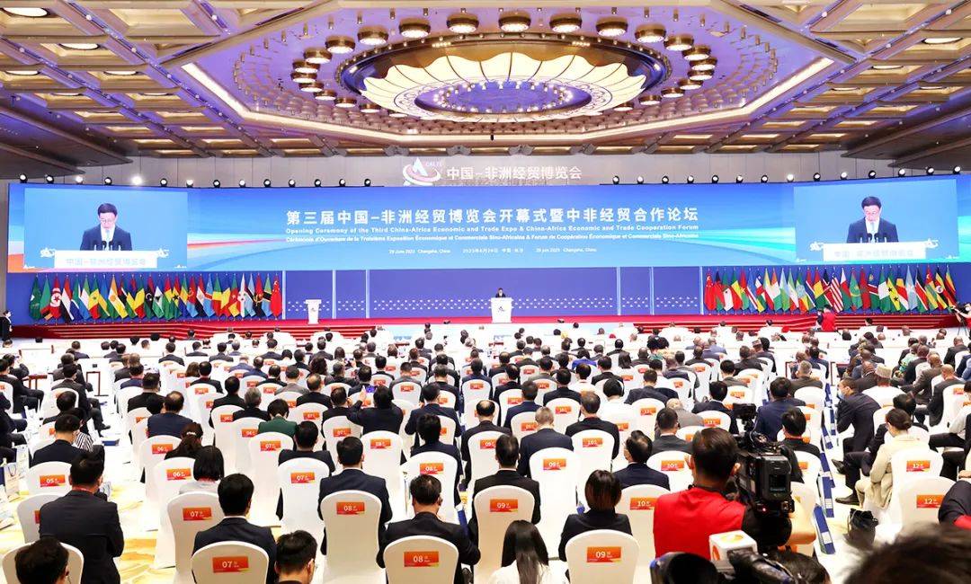2023年6月29日,由中华人民共和国商务部与湖南省人民政府共同主办的第三届中国-非洲经贸博览会在长沙隆重开幕。国家副主席韩正出席开幕式并致辞。马拉维总统查克维拉、坦桑尼亚桑给巴尔总统姆维尼、非洲大陆自贸区秘书长梅内,中共湖南省委书记沈晓明,省委副书记、省长毛伟明,全国妇联副主席、书记处第一书记黄晓薇,省政协主席毛万春等领导出席开幕式。长沙市人大代表、中国国际商会湖南商会副会长、湖南省慈善总会副会长、绿之韵集团董事长胡国安受邀参加开幕式,与来自68个国家和地区的1000多名各界代表汇聚一堂,共同探索更多新技术、新产业、新业态、新模式的国际合作。