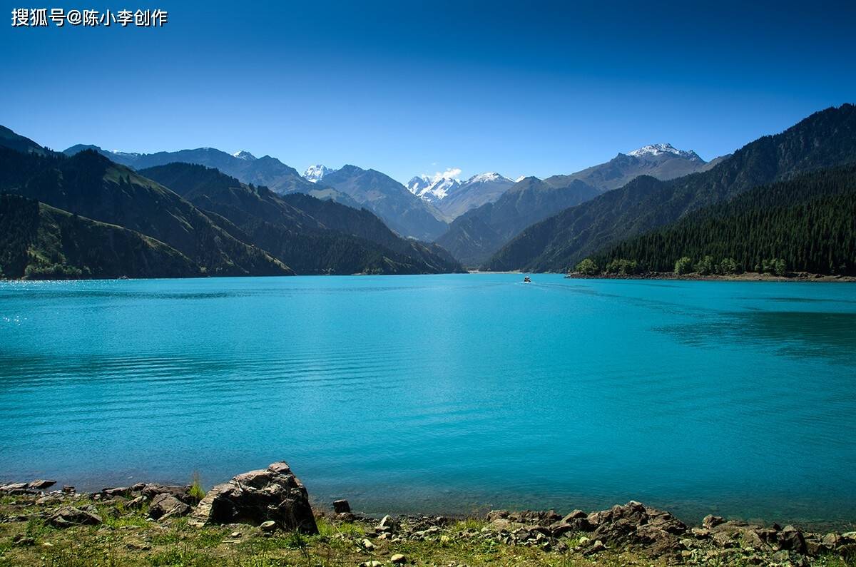 享有“天山明珠”盛誉的天山天池,是一个天然的高山湖泊。它坐落在北天山东段博格达峰下的半山腰,海拔1980米。湖面呈半月形,长3400米,最宽处约1500米,面积4.9平方公里。湖深数米到105米。湖水清澈,晶莹如玉。四周群山环抱,绿草如茵,野花似锦。挺拔、苍翠的云杉、塔松,漫山遍岭,遮天蔽日。
