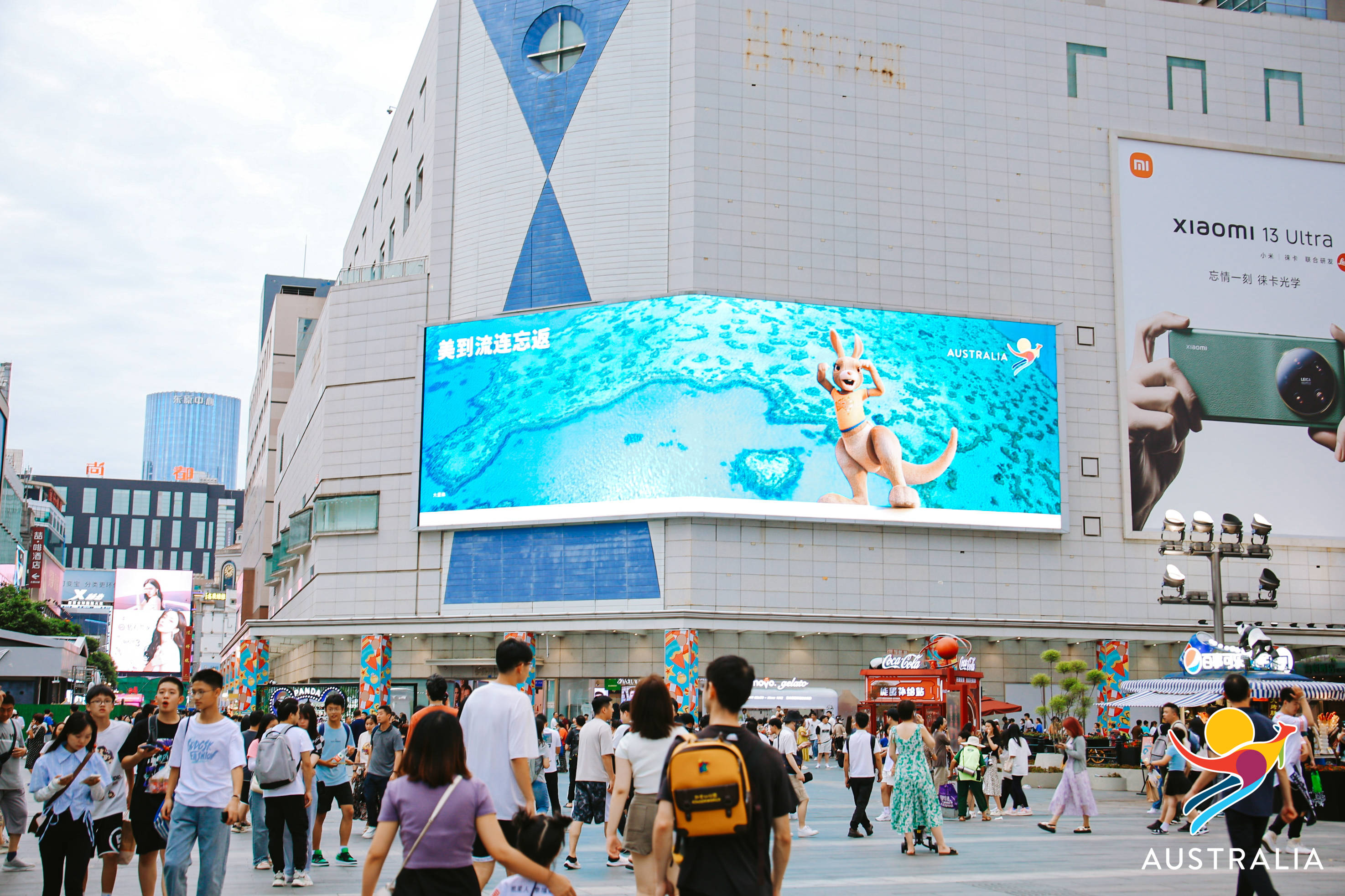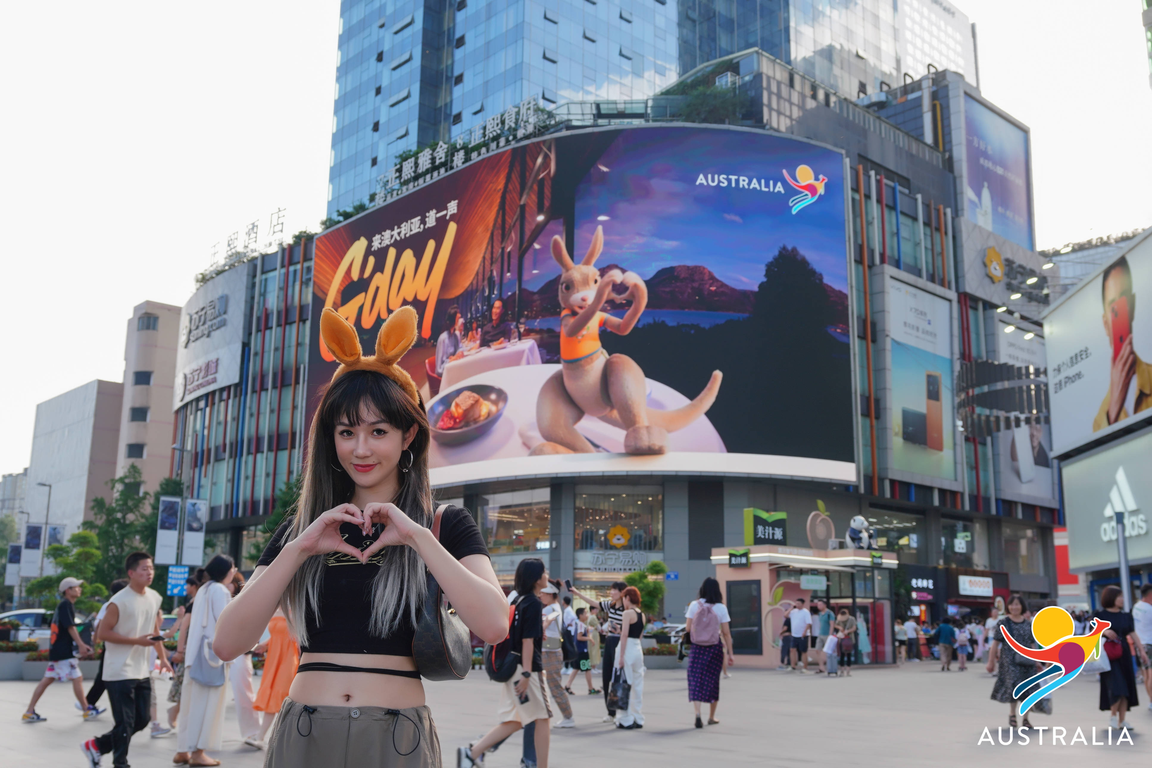 从6月29日到7月2日,袋鼠茹比将作为澳大利亚旅游大使首次来到中国 —— 澳大利亚旅游局选择了同样拥有神奇动物的四川成都举办了“来澳大利亚,道一声你好”品牌发布活动。消费者可在位于远洋太古里的品牌官方快闪店现场观看动画微电影,打卡充满澳式元素的装饰,与袋鼠茹比合影,并体验拍照互动装置。值得一提的是,可爱的茹比还将空降成都太古里3D大屏向大家挥手问好,并作出特别为中国市场定制的比心手势,热情欢迎中国游客。同时她还将在春熙路红星广场三块户外大屏上来回跳跃穿梭,向游客展示澳大利亚各地的旅游风景,效果十分震撼。
