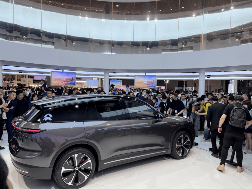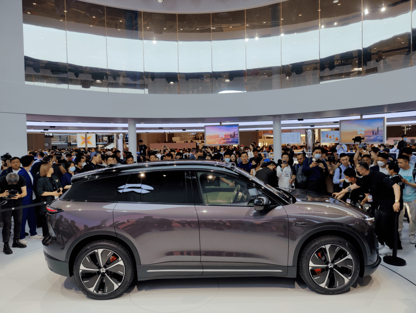 随后,在朋友的带领下,我决定去蔚来展台看看。一方面是因为他是蔚来车主,另外一方面也是因为我想给老婆买台纯电动SUV代步开,他便推荐我去看看。没想到,一进蔚来展台,我人就傻了,一层整齐划一地停着蔚来ET5、ET7、EC7、ES7和ES8等车型,三台不同颜色的EP9超跑一字排开,气场直接拉满。