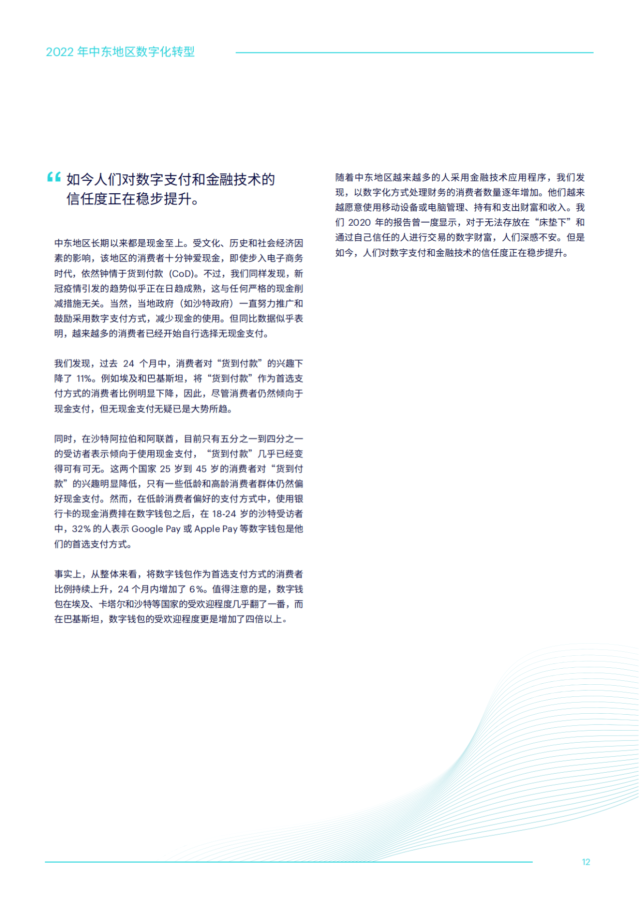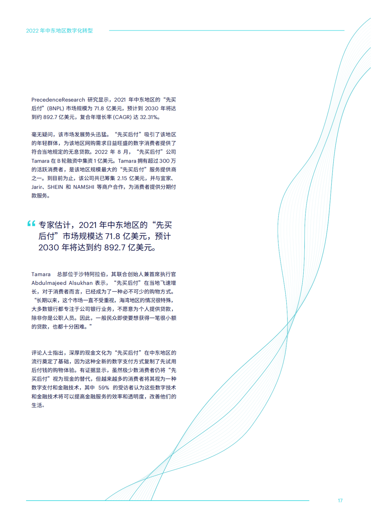 正如本报告中所述,整个地区的金融技术和数字支付采用率继续增长。商户竞相追逐这一浪潮,不断创新,为消费者提供多样的产品与服务。消费者也迅速反应,随着他们的期望越来越高,竞争将日趋激烈。如今中东地区的创新和增长已进入良性循环。