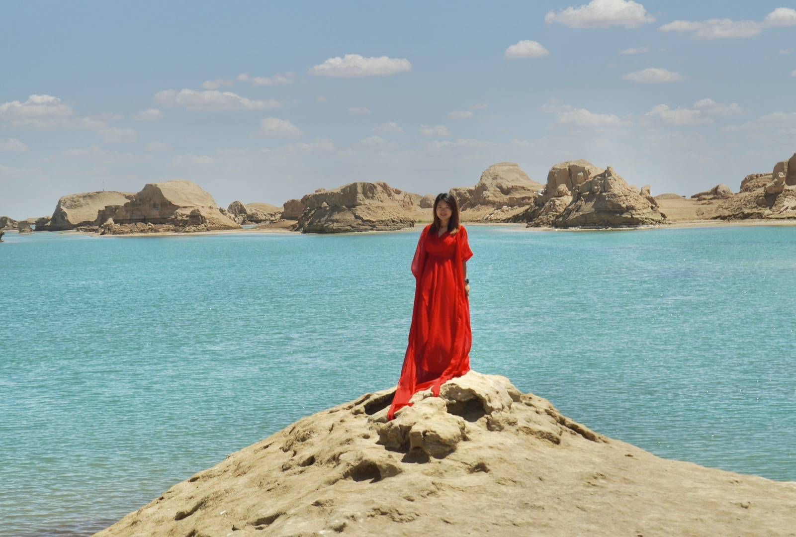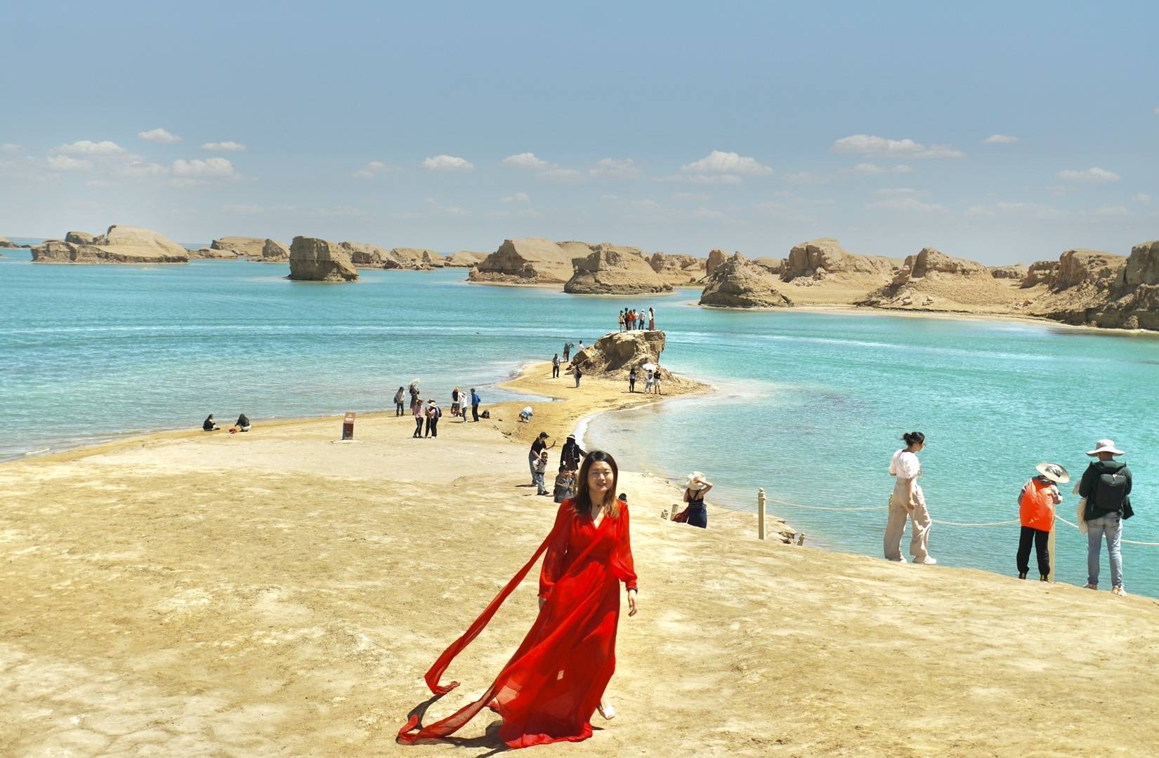 她说,这是全世界唯一的水上雅丹,荒漠中的海上舰队。