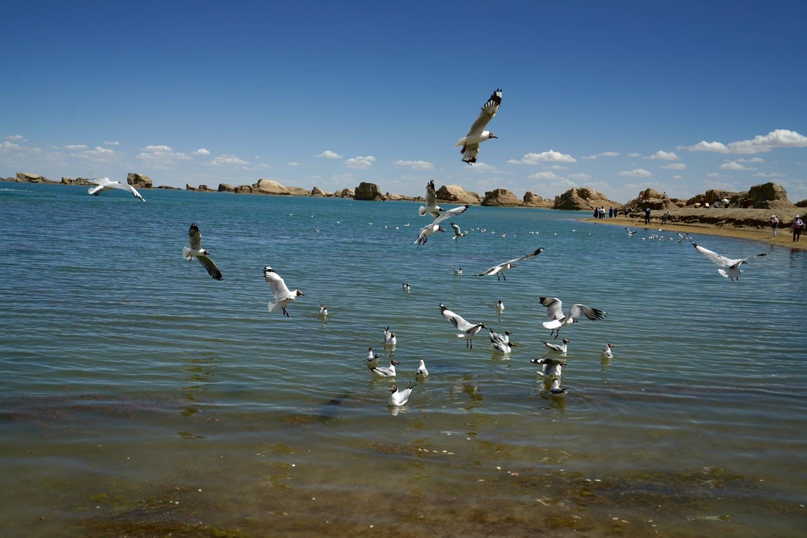 湖面的海鸥令我们惊艳,只见一排的镜头对着拍,我们也不例外。