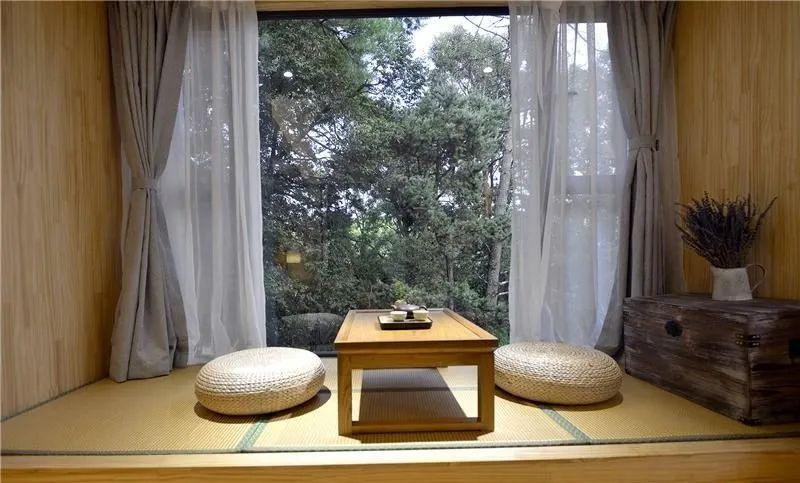 进门就有品茶休闲区,在屋里畅聊品茶的同时,一转头就能看到窗外的山林云海……回归本质的日子,简单而纯粹。