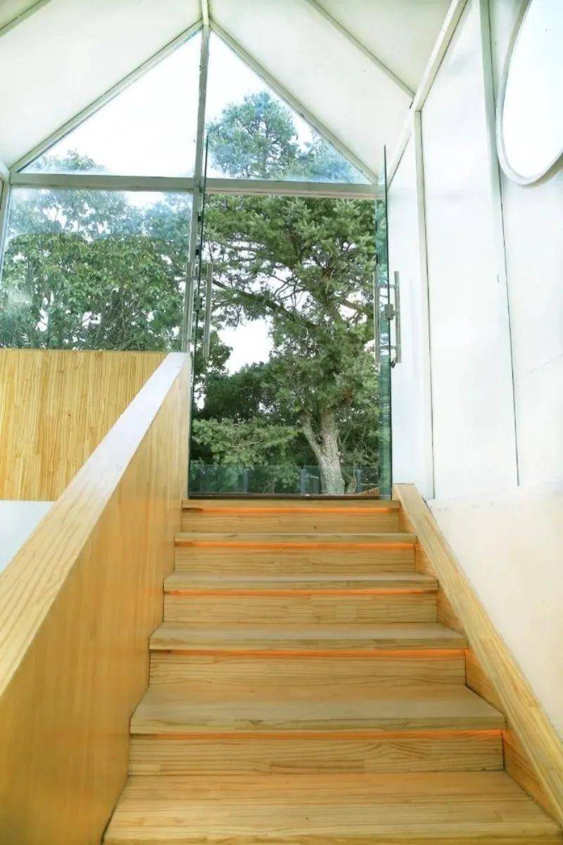 民宿的整体风格以现代简约为主,干净利落的设计线条,稻草漆的自然感纹理设计,错落有致的景观布局,加上大面积的落地窗,使得森林与房间巧妙融合,随意中透着返璞归真美感。