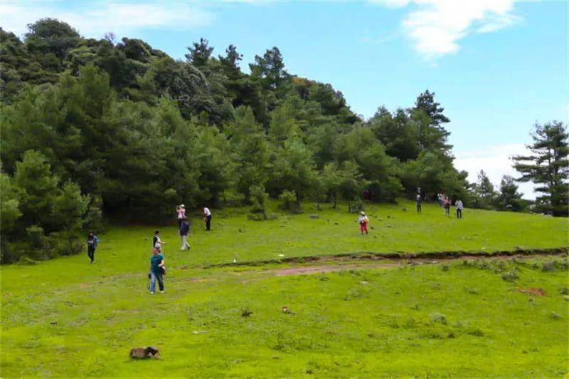 到达山顶,一大片绿茵茵的高山草甸呈现在眼前,周边是一望无际的原始森林,林中曲径通幽、花草繁茂,景色赏心悦目。