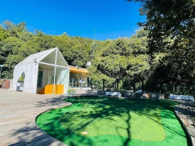 除了住房,“陌上云来”还有露天茶吧、微型高尔夫球场、露天电影和KTV等,简直就是一处吃喝玩乐住齐全的“休憩之所”。特别是森林天台,这里绿林花海环绕,桌、椅、沙发等一应俱全,可尽情观景、聊天、游玩、小憩。