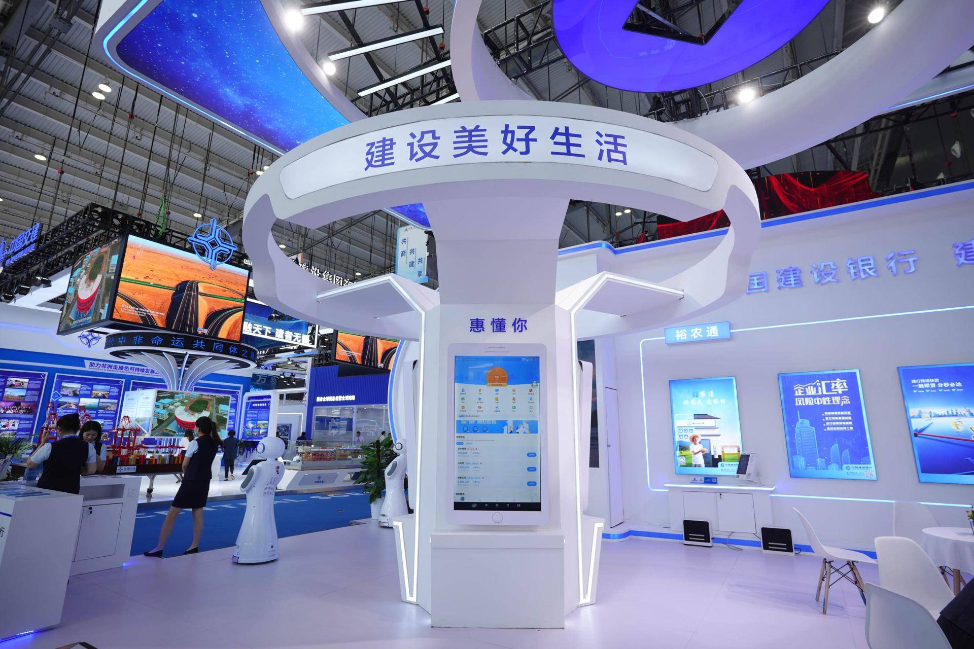 作为连续三届参加中非经贸博览会的国有银行,此次湖南建行在博览会展览馆金融展区设立展厅,并设立机器人展示区、多媒体演示和体验区、业务展示及洽谈等区域,为参展企业及现场观众展示建行在跨境金融、住房金融、普惠金融、乡村金融、消费金融等综合金融服务。