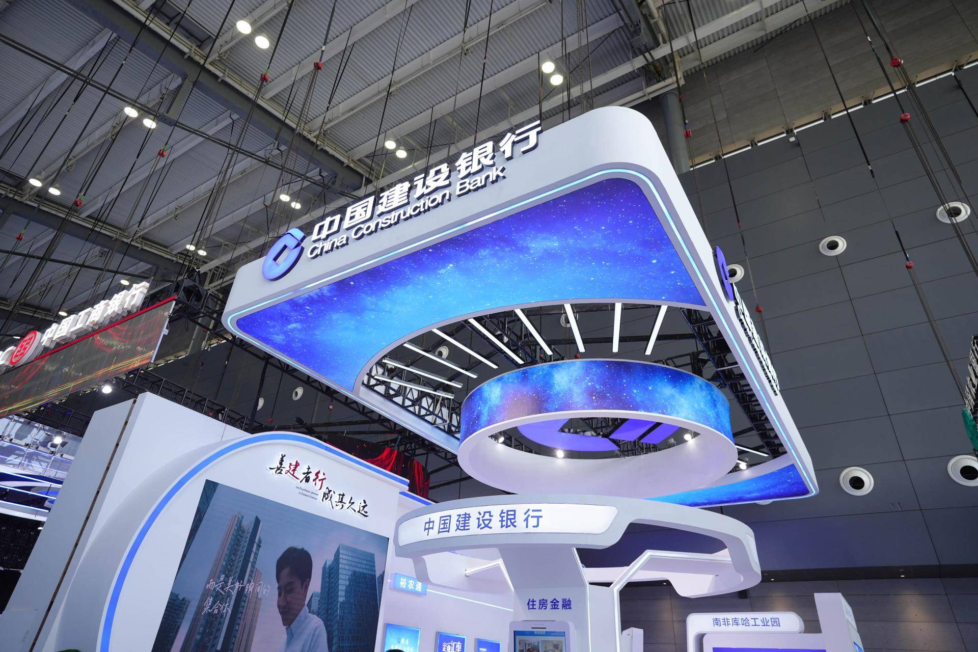 目前,建设银行在境外31个国家和地区近200家机构,构建起了跨时区、多币种、不间断的全球金融服务网络,充分发挥“金融全牌照”和“服务全球化”的优势,为参展客户配套提供综合服务解决方案。