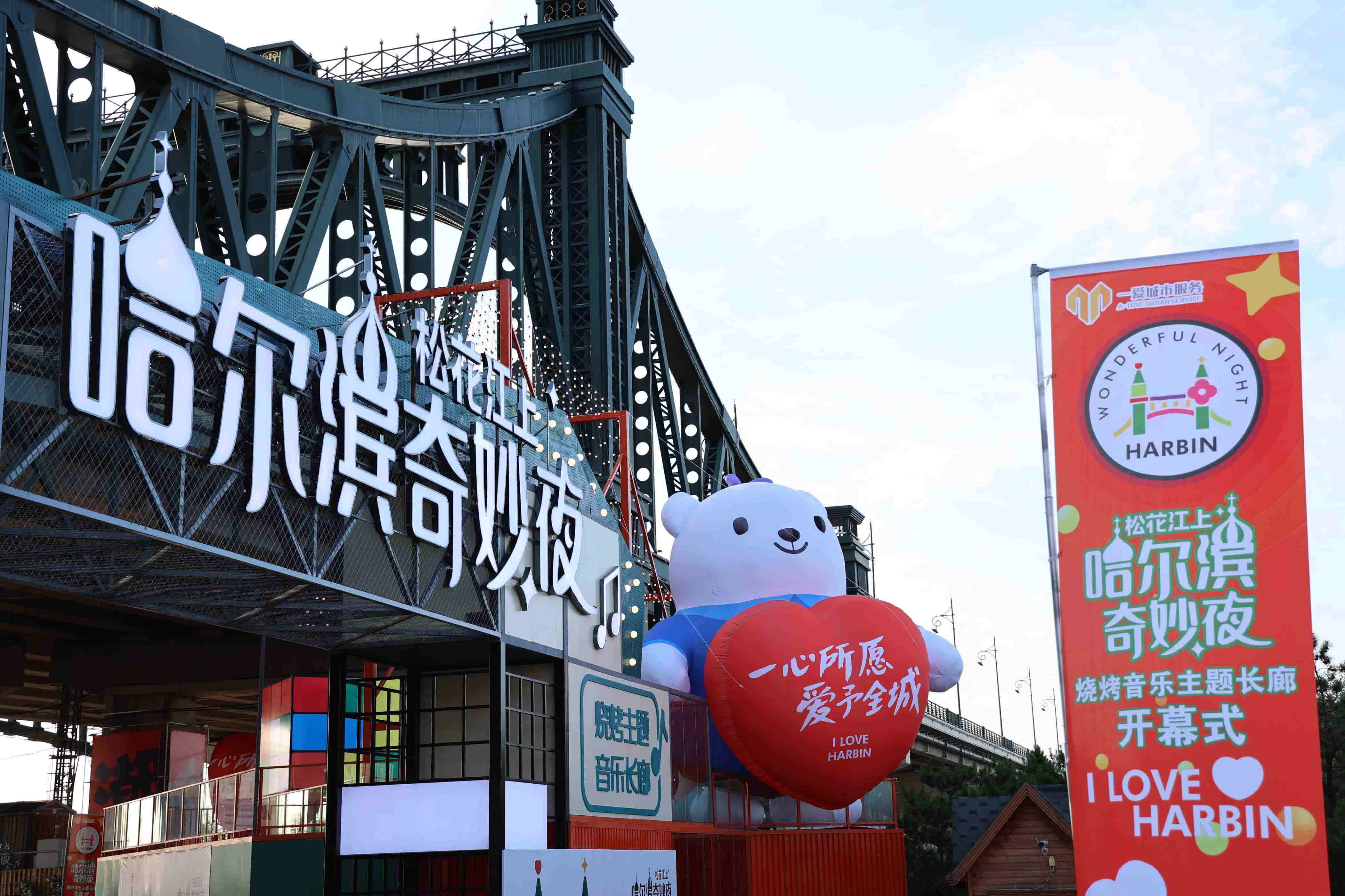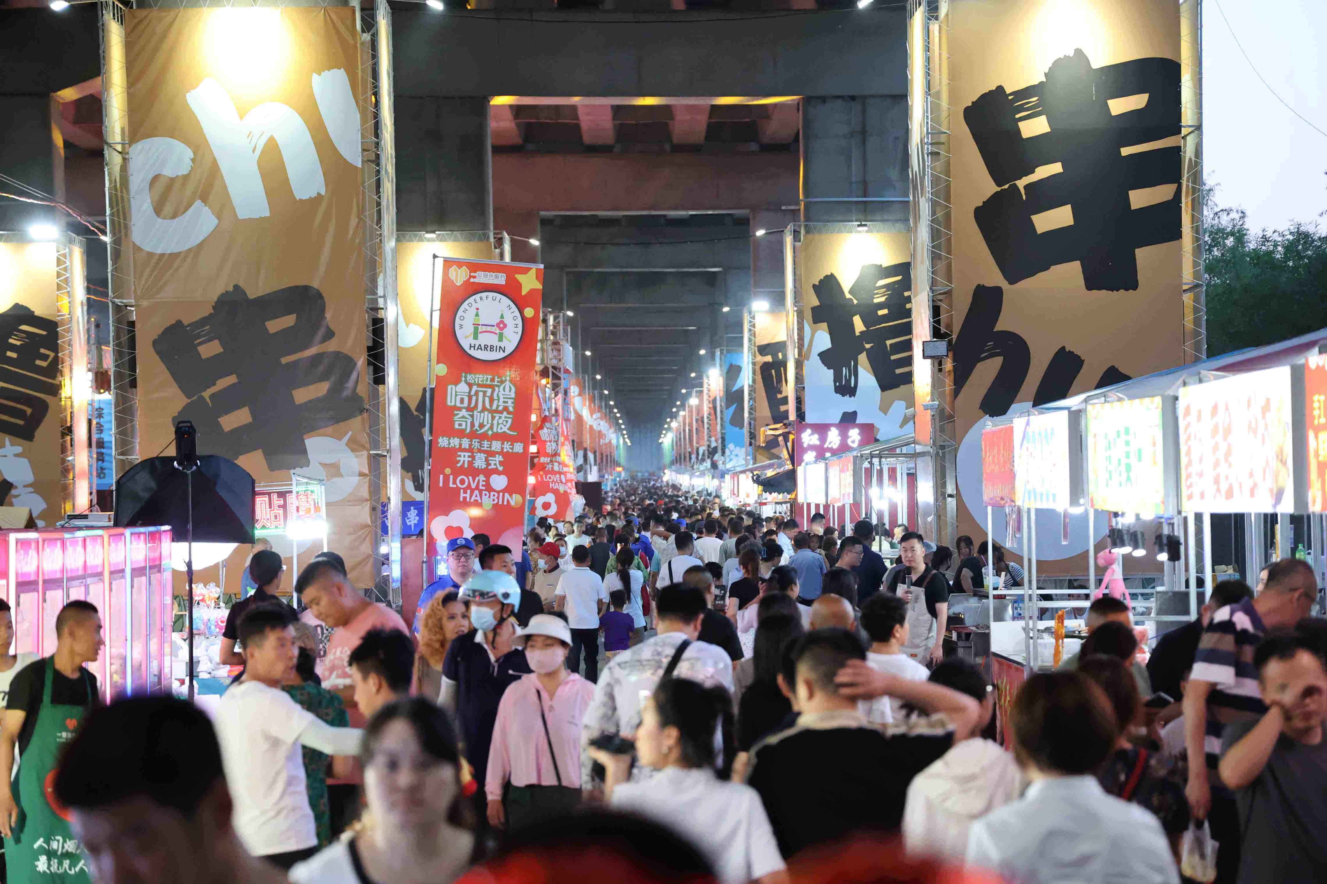 6月30日,哈尔滨市道里区政府规划建设的大型夜经济项目“松花江上˙哈尔滨奇妙夜”一爱烧烤音乐主题长廊盛大启幕。