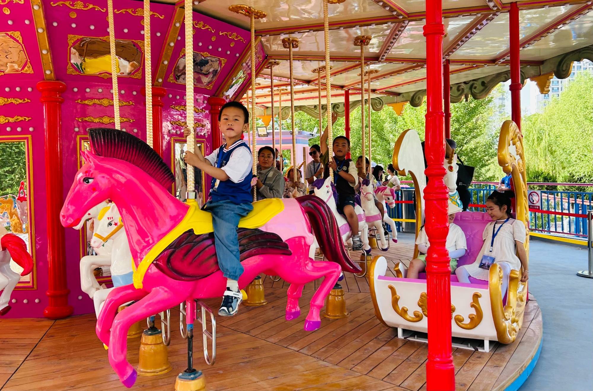 “今天是周末,我们一家带着孩子体验了海盗船、旋转塔等娱乐项目,和孩子一起享受童年的乐趣,陪伴他成长。”游客王女士说。