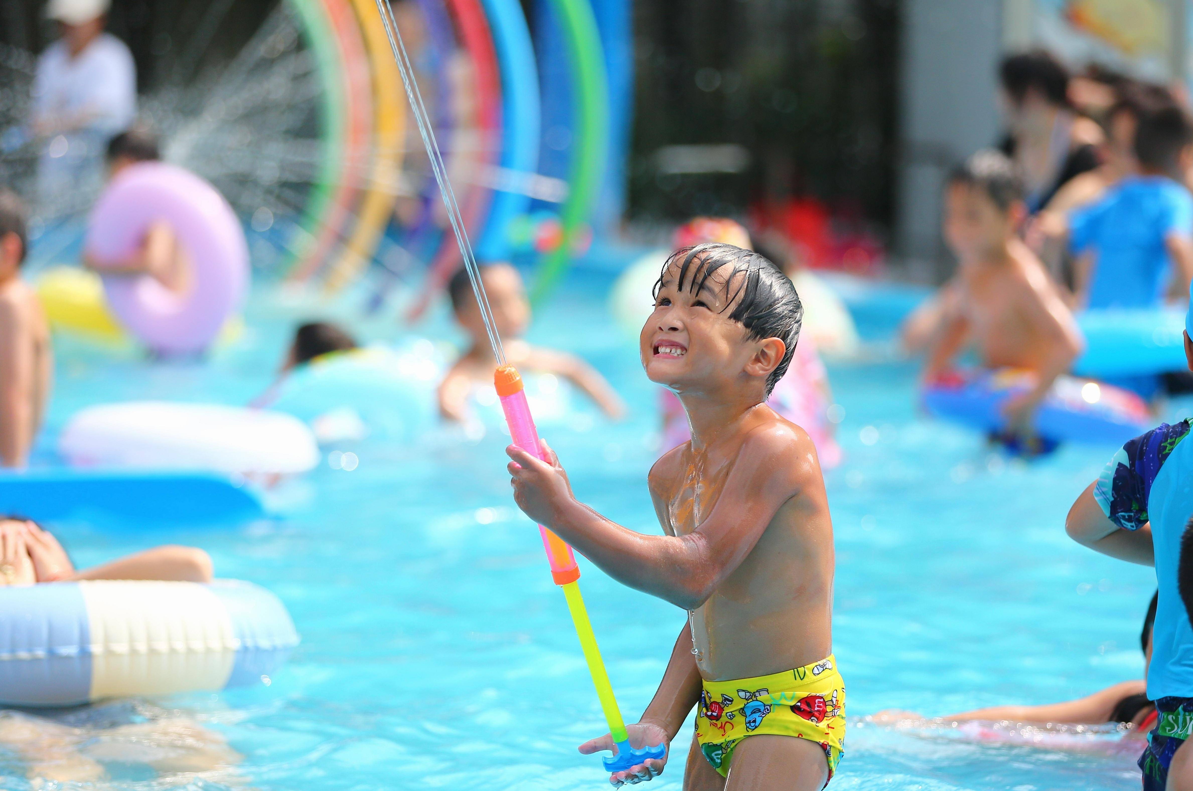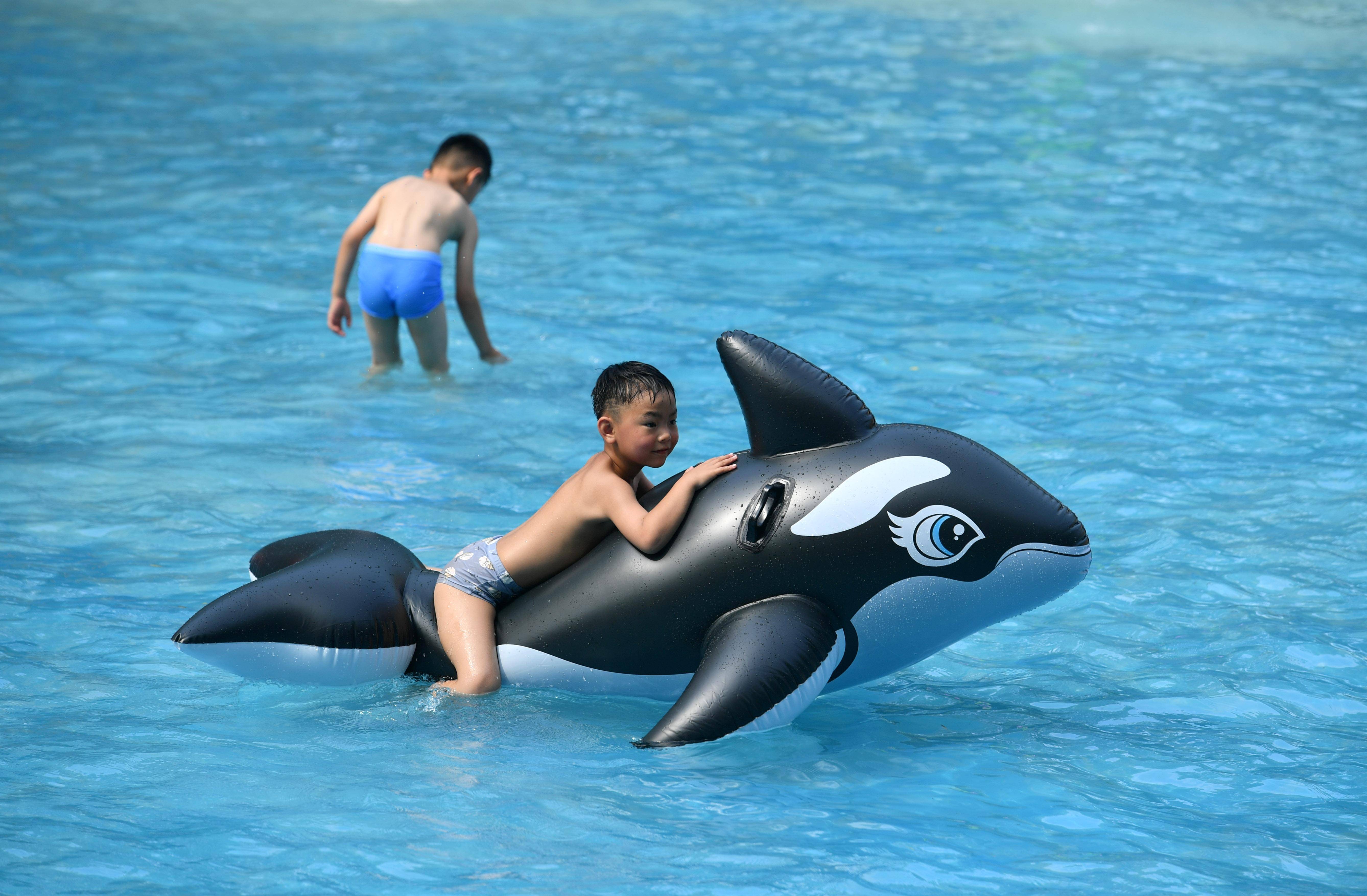 7月1日,小朋友在河南省夏邑县樱花园水上乐园戏水。 新华社发(苗育才摄)