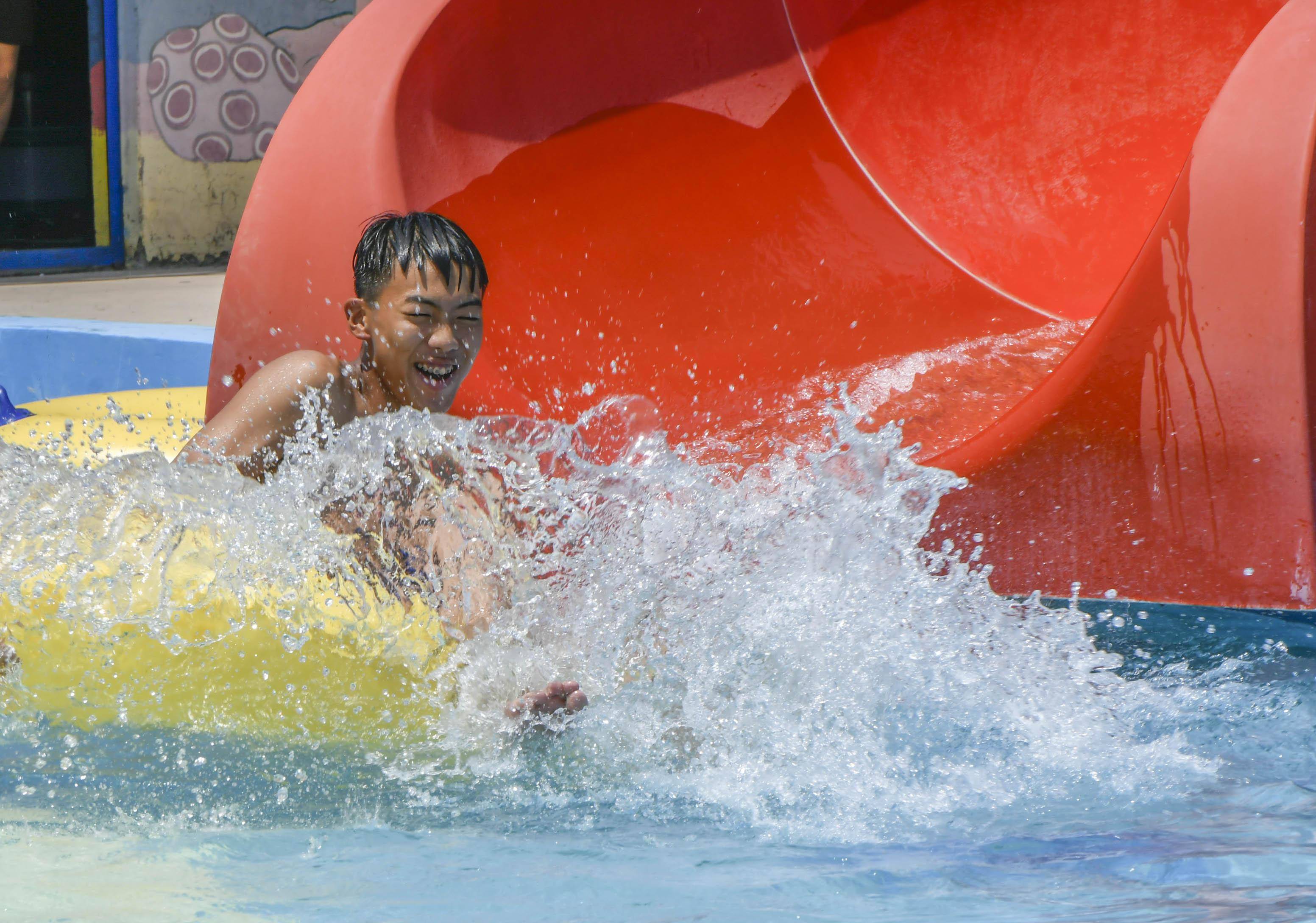 7月1日,小朋友在山东省滕州市东城水上乐园戏水。 新华社发(李志军摄)