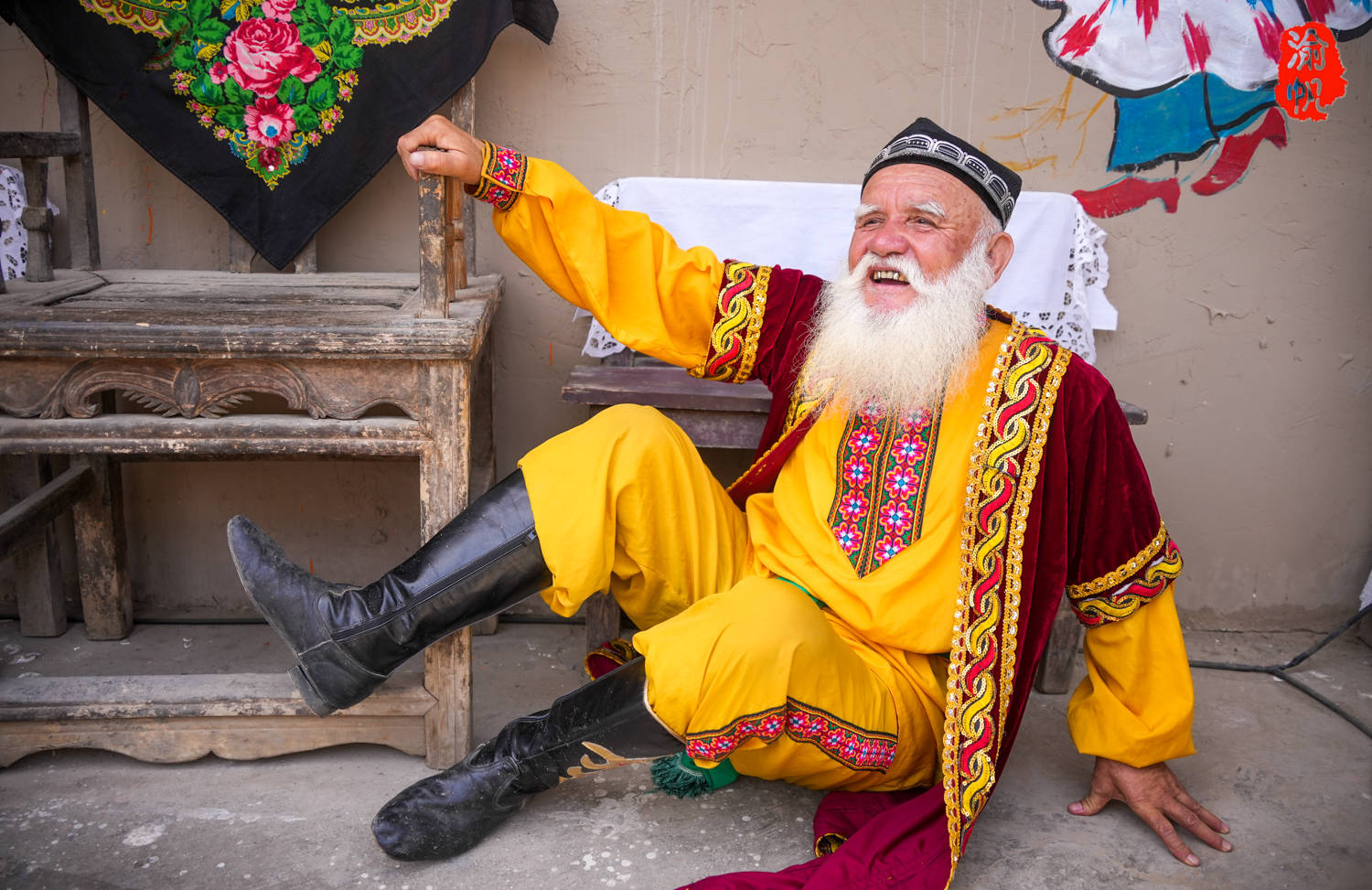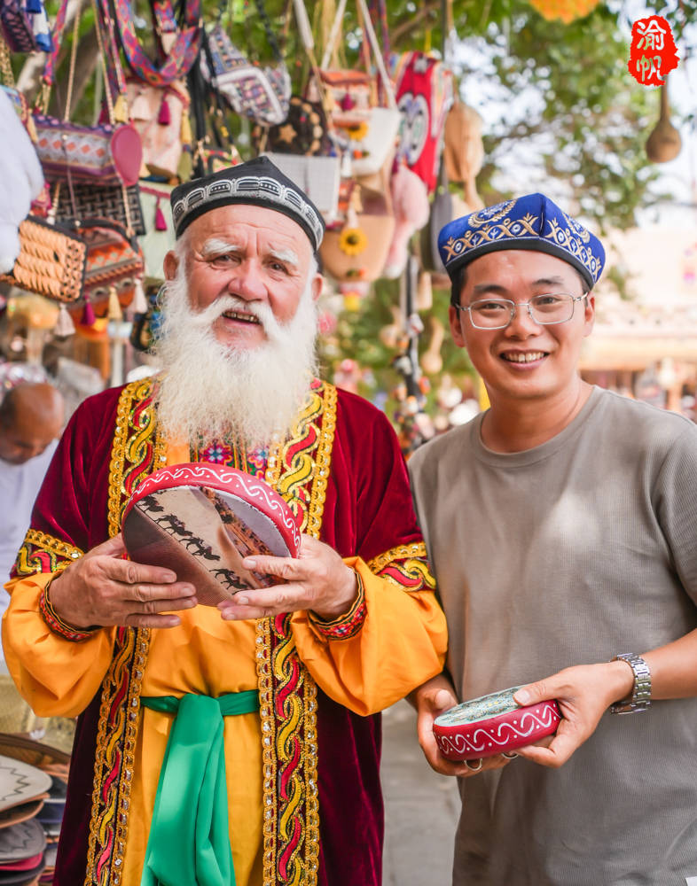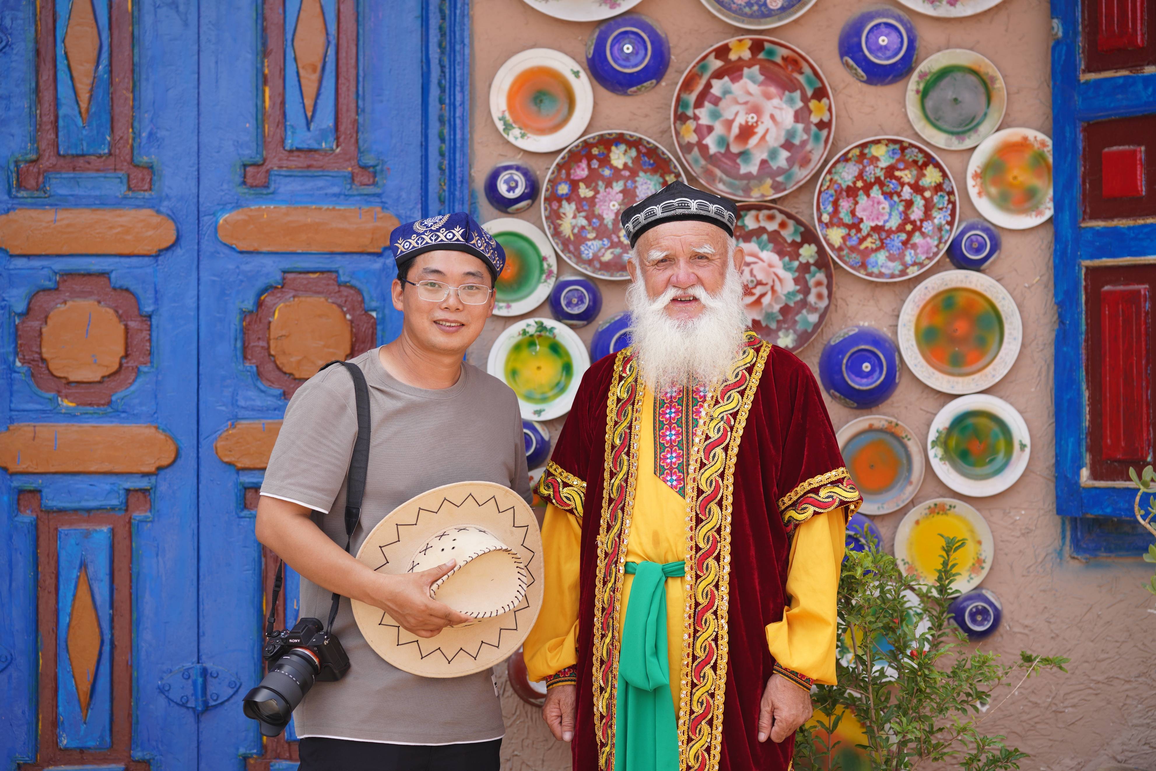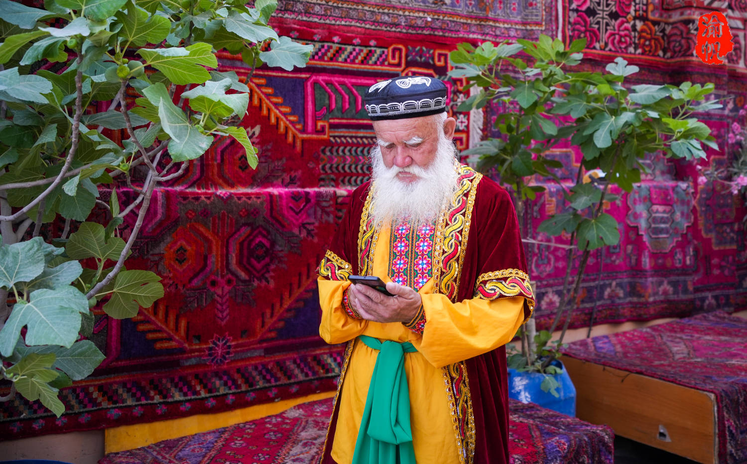吾买尔爷爷说,他已经83岁了,是库车当地人,长期坚持锻炼,虽然年愈八旬,白须飘飘,但身体十分硬朗,依然能唱能跳,而且老有所乐,身兼多重身份,既是“萨玛尔”顶碗传统技艺舞蹈的非遗传承人,又是网红帐号“新疆诺爷”的创作者,还是和蔼可亲的邻家老爷爷。
