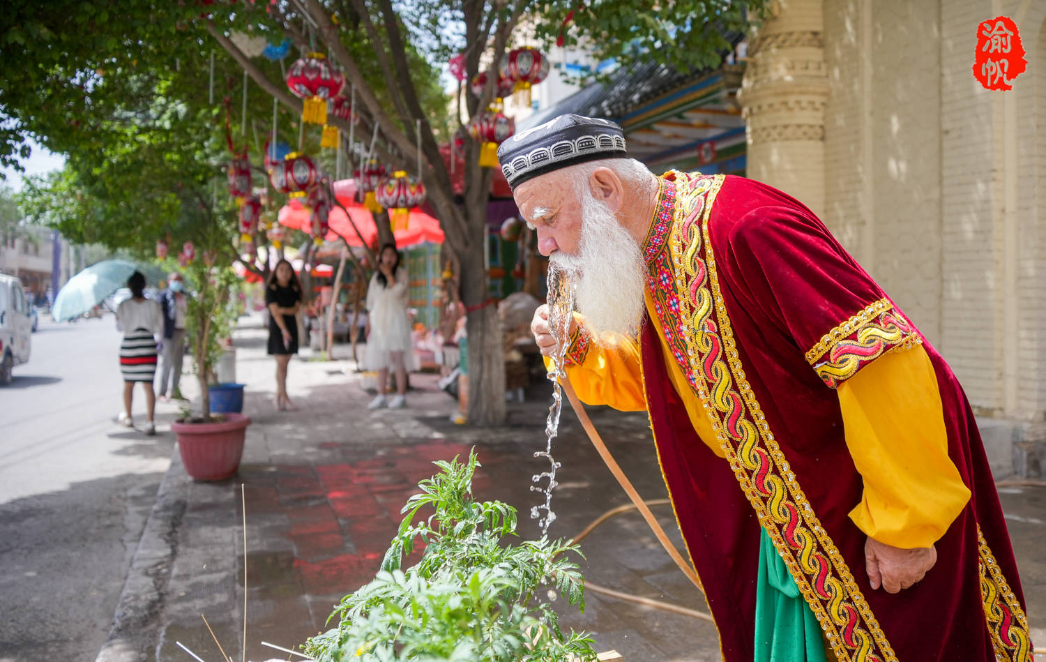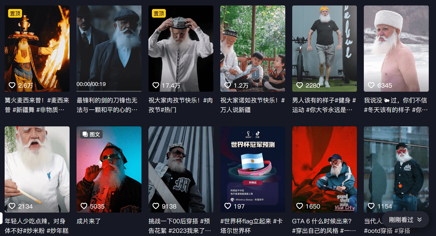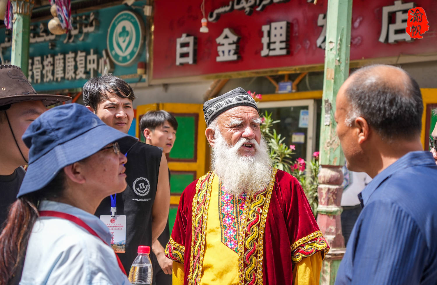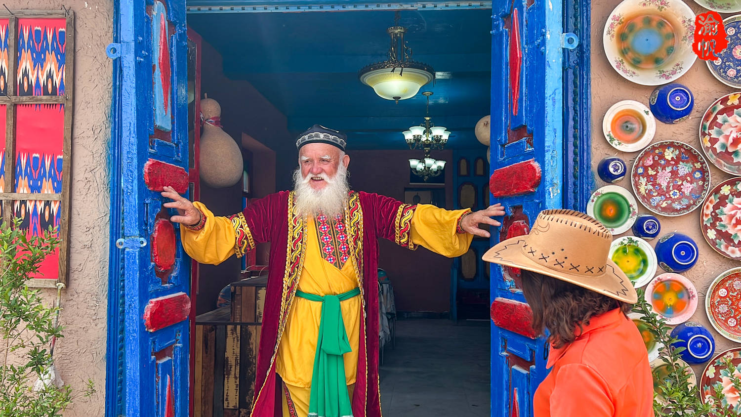 吾买尔爷爷说,他已经83岁了,是库车当地人,长期坚持锻炼,虽然年愈八旬,白须飘飘,但身体十分硬朗,依然能唱能跳,而且老有所乐,身兼多重身份,既是“萨玛尔”顶碗传统技艺舞蹈的非遗传承人,又是网红帐号“新疆诺爷”的创作者,还是和蔼可亲的邻家老爷爷。