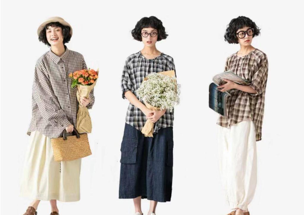 在日系休闲风格中,格子元素的出镜率非常高。她们美丽、自由、洒脱。减龄效果很好,大学风十足。