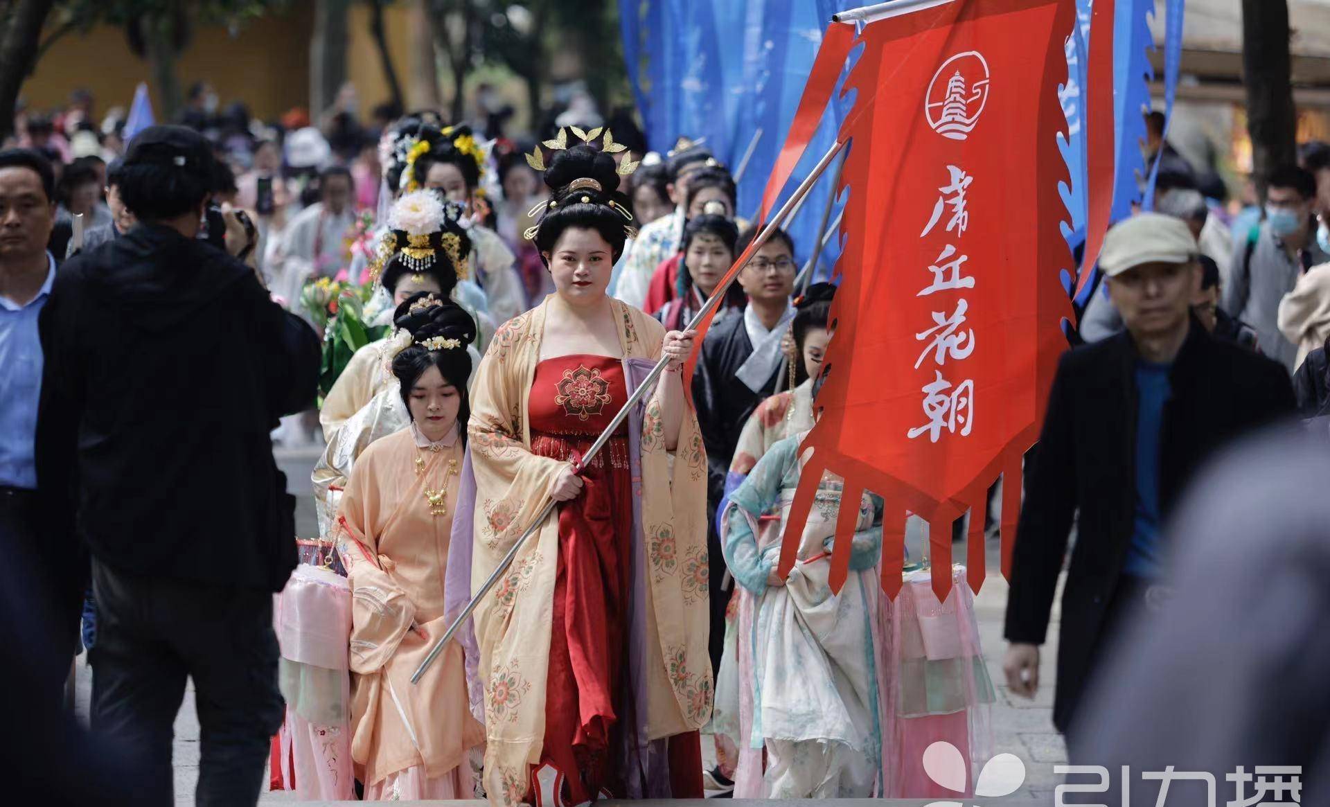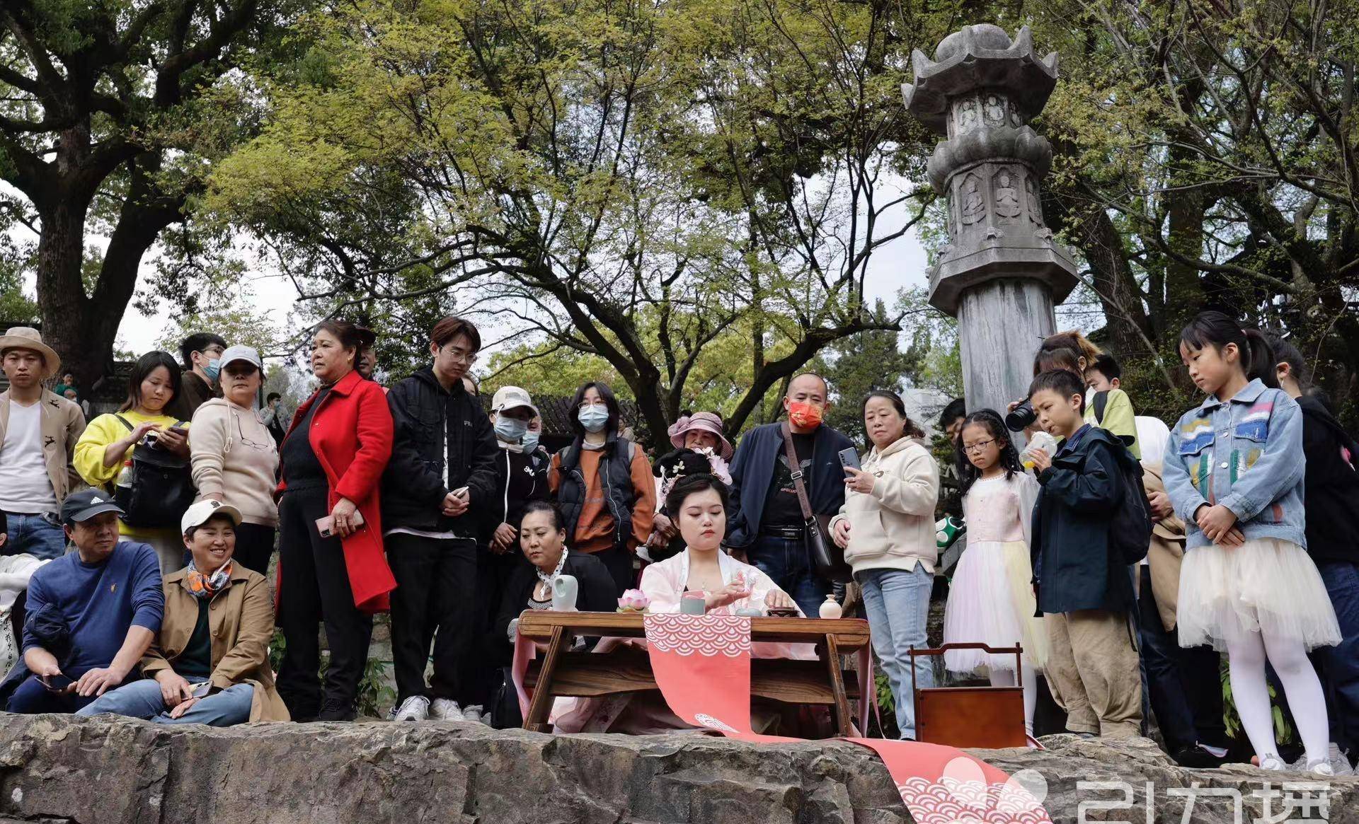 一幅屏风画,一首花朝诗。上午10点,花神巡游队伍从西溪环翠出发,沿上山道缓缓前行,还原古时花事习俗,展示虎丘的汉服文化、传统礼仪,让游客陶醉在虎丘胜地,一览花朝。巡游队伍中,花神小姐姐们向游客发放祈福牌、虎丘三花茶等小礼物,举手投足中,处处彰显着虎丘的传统花文化。