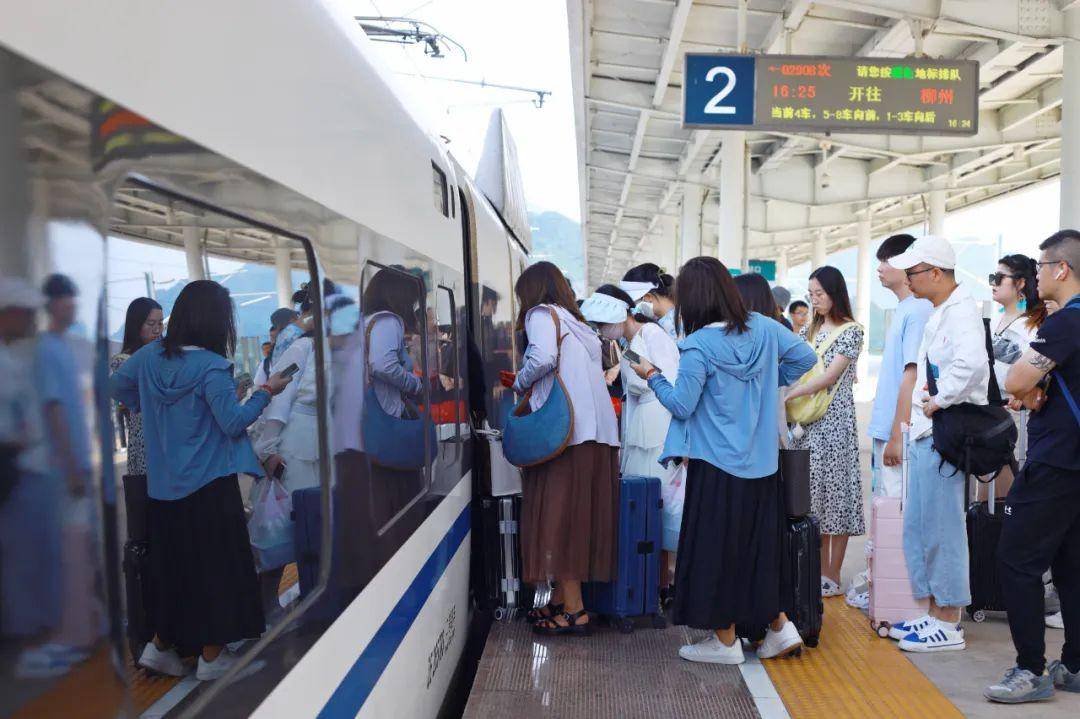 为满足广大旅客出行需求,桂林火车站在暑运期间图定开行列车326趟,其中动车组列车292趟,占图定停靠列车总对数的89.6%,动车趟数值比重逐步加大,铁路运输能力大幅提升,区内外游客入桂旅游更加便捷。