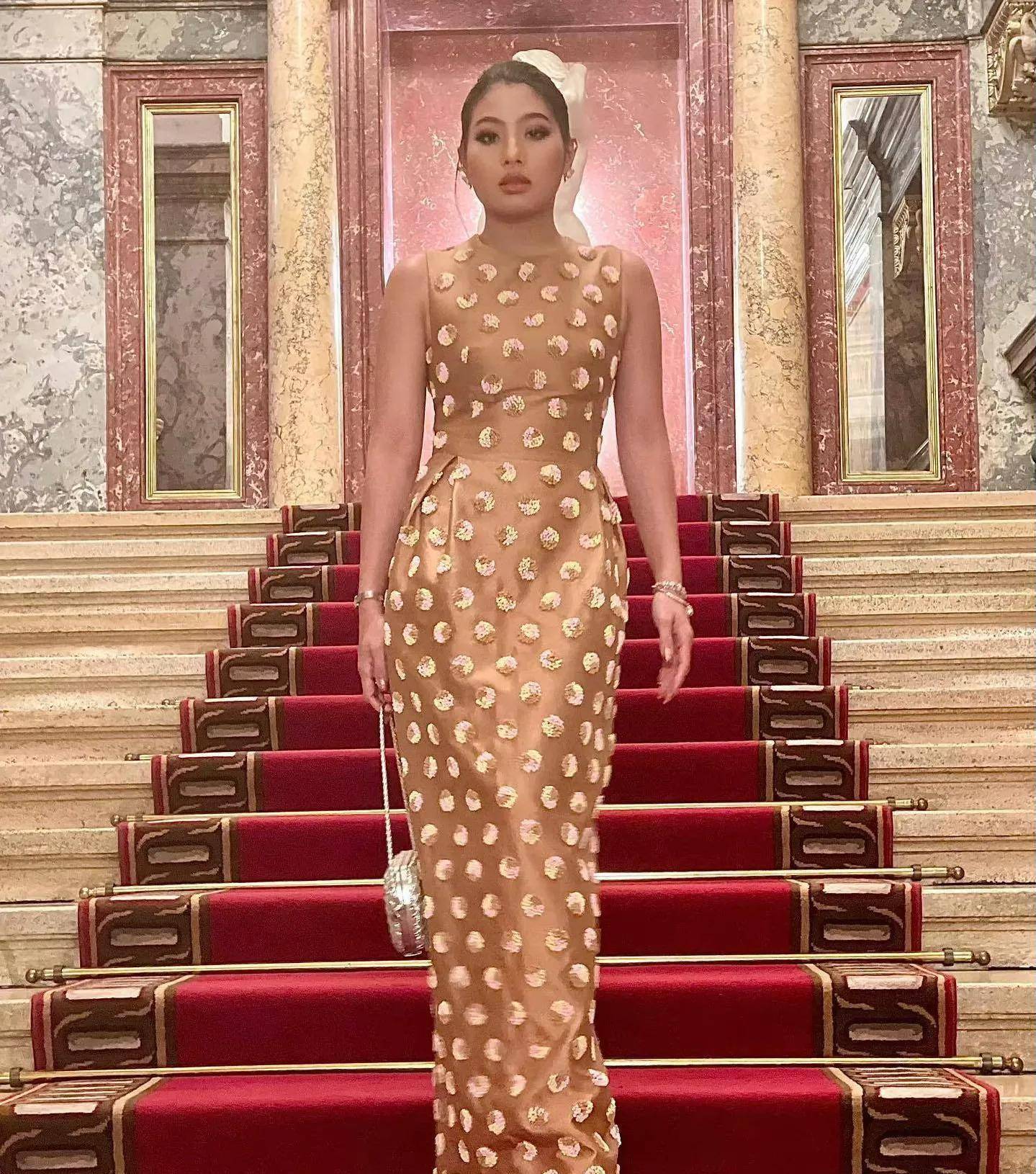 2018年5月,小公主穿着它出席了今年第79届维也纳爱乐乐团音乐会。在“金色大厅”举行的音乐会上,小公主穿着这件“仙女”礼服,成为全场的中心。