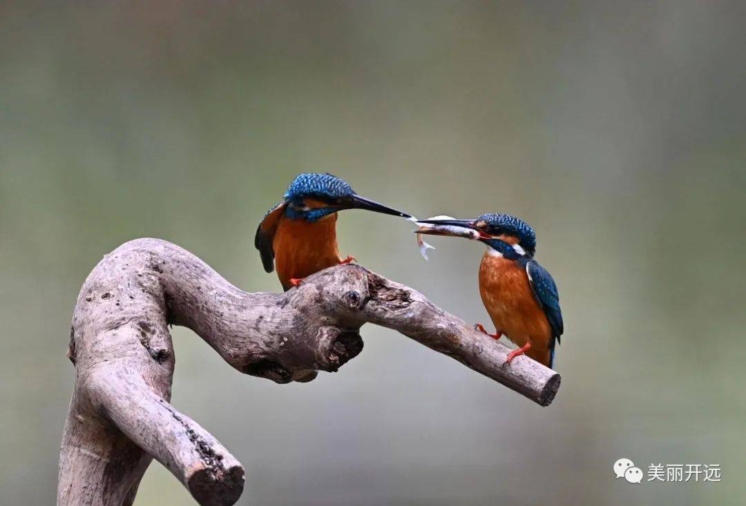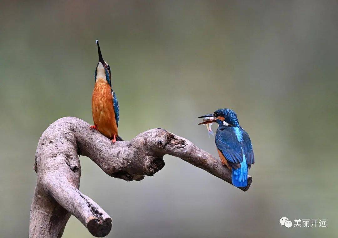 春天是翠鸟交配的季节,该交配过程被称为“踩背”。踩背前,雄鸟会殷勤地献上一条小鱼表达爱意,以博得雌鸟的好感。雌鸟收下礼物后雄鸟开始“踩背”,完成自然界的繁衍生息。