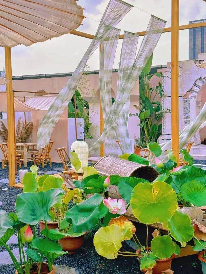 卧躺于书韵竹筏上,看鱼儿在水中畅游,湖水泛着微波,轻触荷叶随风轻舞,摇曳生姿,体验“鱼戏莲叶间”的快乐。