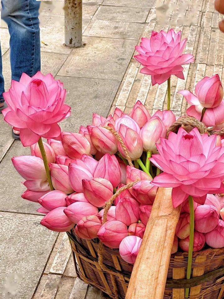 “春有百花夏有荷”,人间六月天,倚担卖荷人。上午可以去小西街走一走,你会发现在小西街的街头巷尾有卖荷人,担子里的荷花娇嫩欲滴。别犹豫,给自己来一份“好运莲莲”。