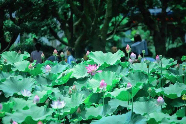 想要赏荷,推荐前往大草坪、荷花池、临湖邀月这几个景点附近。
