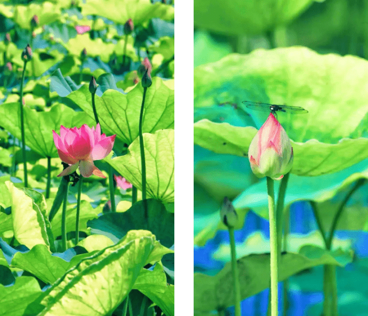 临海荷花开得最好的地方,当属灵湖景区。这里坐拥湖光山色,就连荷花都浸润着灵气,人走入其中,也成了风景。