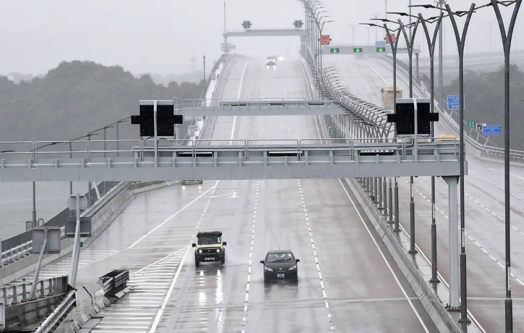 7月1日,香港本地单牌车行驶在港珠澳大桥香港段。新华社