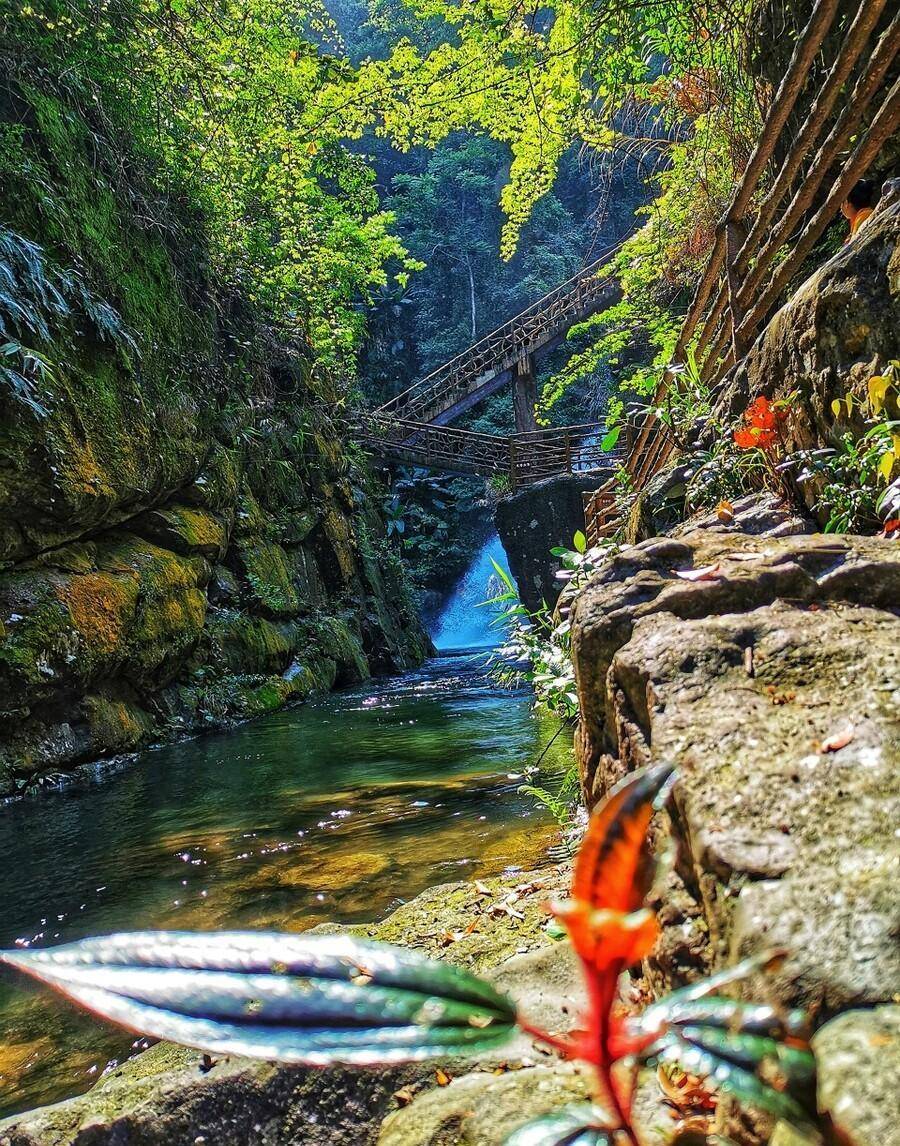 银河瀑布高度约120米,集束奔流。黄满寨瀑布所在的山谷比较幽深,山间林木茂盛,每每遮挡住无情的烈日,这便使得这里成为夏日消暑的绝妙去处,选一日午后,斜倚瀑边大石,听飞瀑轰鸣,读未完之书,直可濯荡尘虑,清静身心。