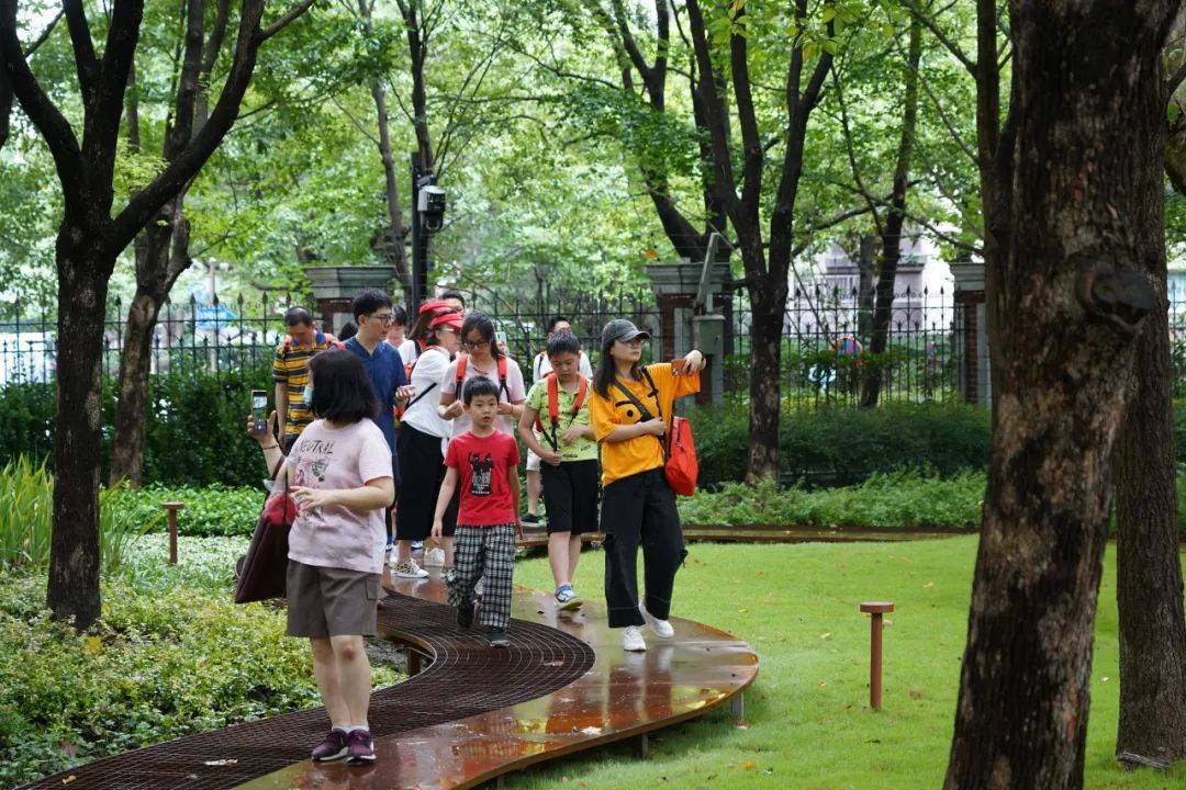 凝聚力工程博物馆更新后,还拓展中山公园空间与功能,释放近2000平方米的馆外绿地,打造了具有宣传、休憩、科普等多功能的特色生境园地和长宁践行习近平生态文明思想的展示窗口。微旅行中,市民游客们沿着绿地步道,欣赏苍翠植被,观察花间飞蝶、虫鸟,感受大自然的美好。