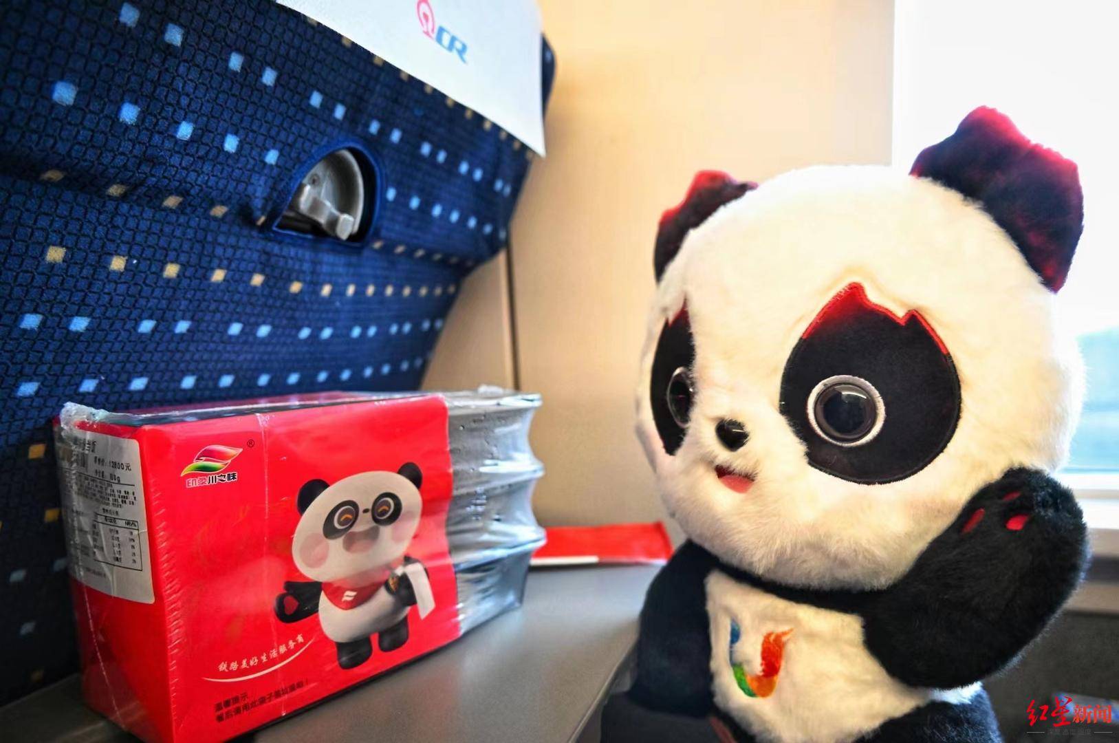 晚餐时间,列车上提供了川味特色餐食,上面印着熊猫“莽嘟嘟”。