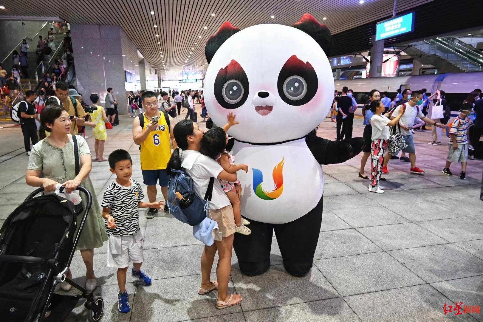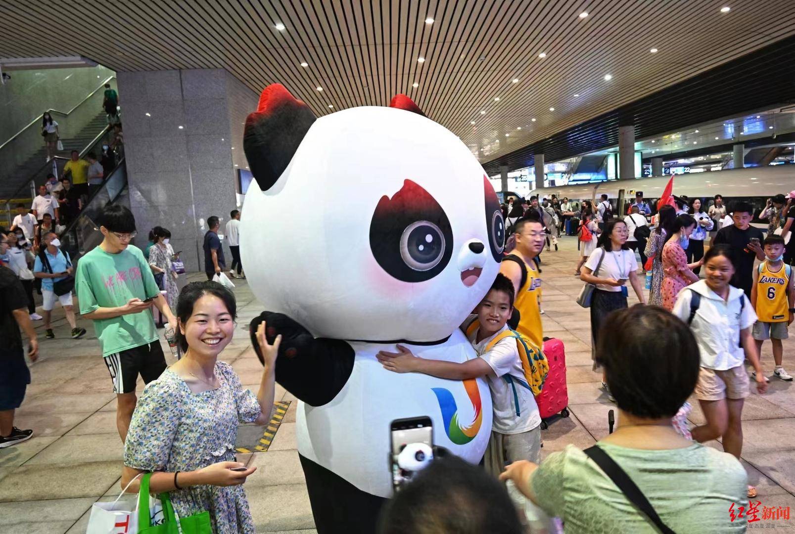 ▲旅客和“蓉宝”合影