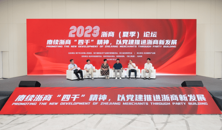 7月1日,在党的102岁生日之际,2023浙商(夏季)论坛在海宁长安杭派服饰产业园举行。来自省内外的浙商企业家、专家学者、媒体代表等近200人围绕“赓续浙商‘四千’精神,以党建推进浙商新发展”主题展开深入交流,共同探讨浙商发展新机遇、新路径、新作为。