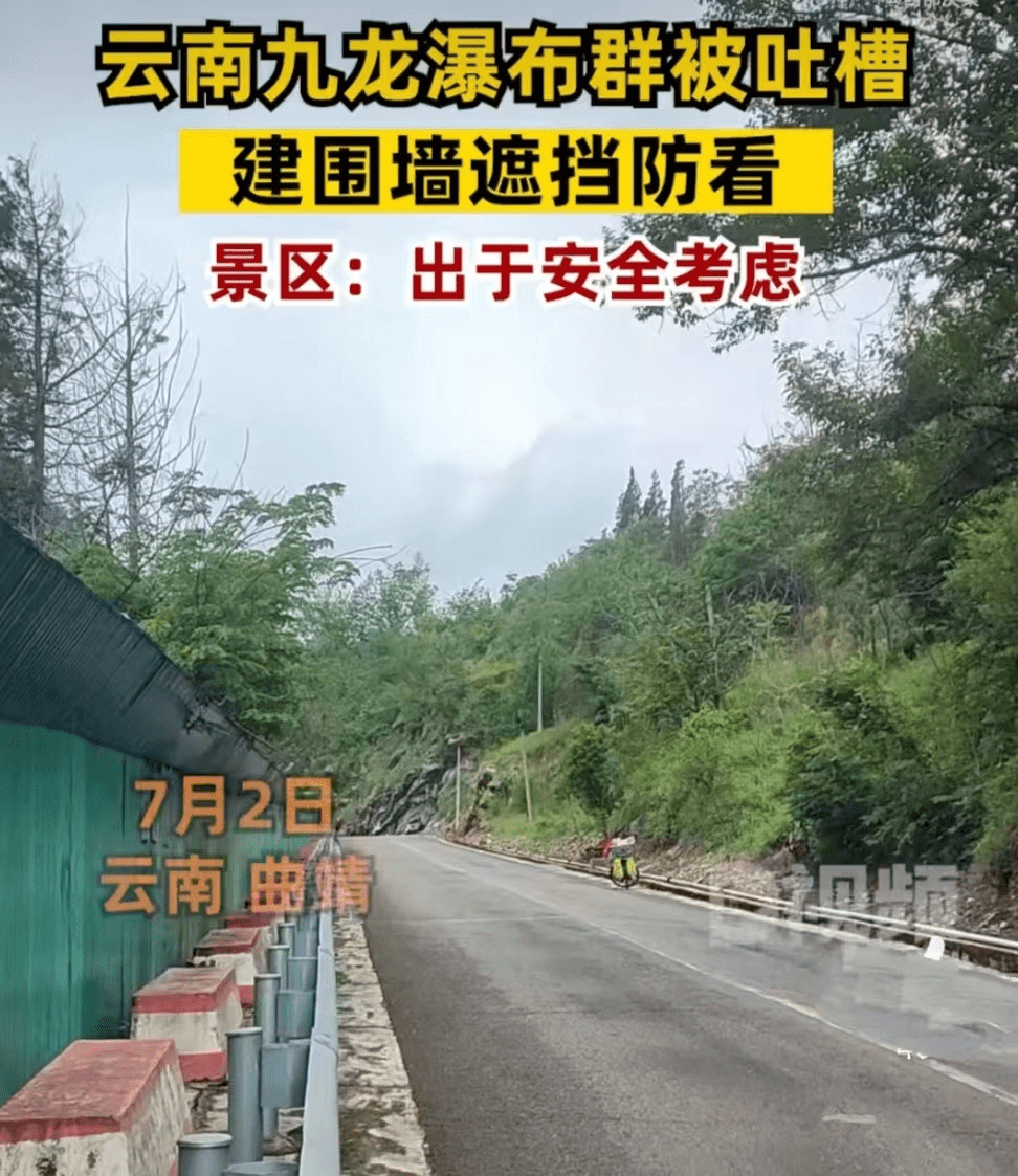 7月2日,云南曲靖。有网友发视频,吐槽罗平九龙瀑布群景区建围墙遮挡防看,引发热议。