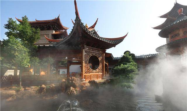 就好像是走进了一座壮观的江南园林一般,水中还有游来游去的鱼儿,在水面上还笼罩着淡淡的白雾,仿佛让人置身于仙境之中,来往的人无不沉醉在其中。而且在“云天宫”当中,还有大量来自于日本以及台湾的罗汉松,还有各种名贵观树和盆栽,还有各种造型奇特的石雕等等,让人止不住的叹为观止。